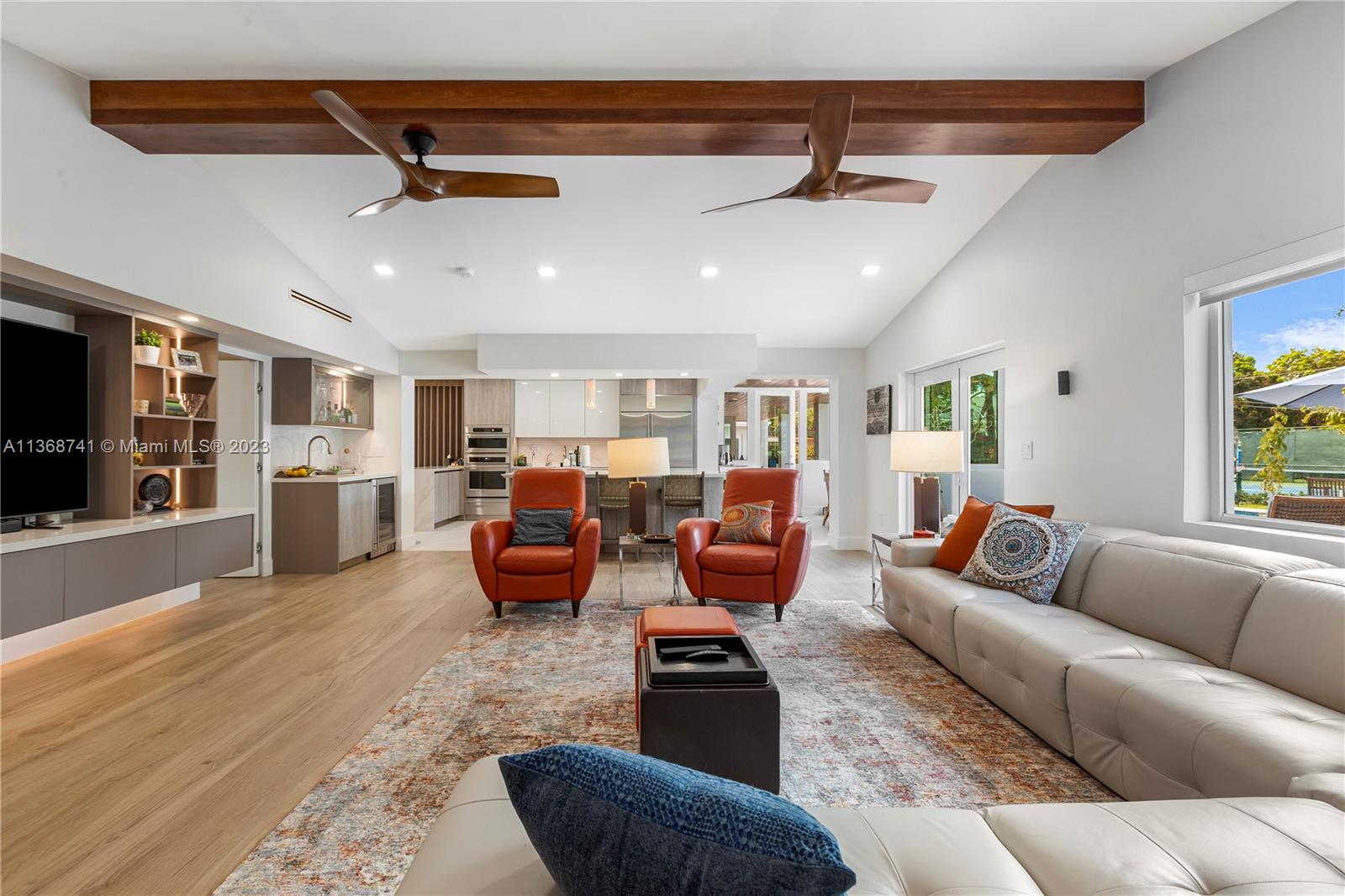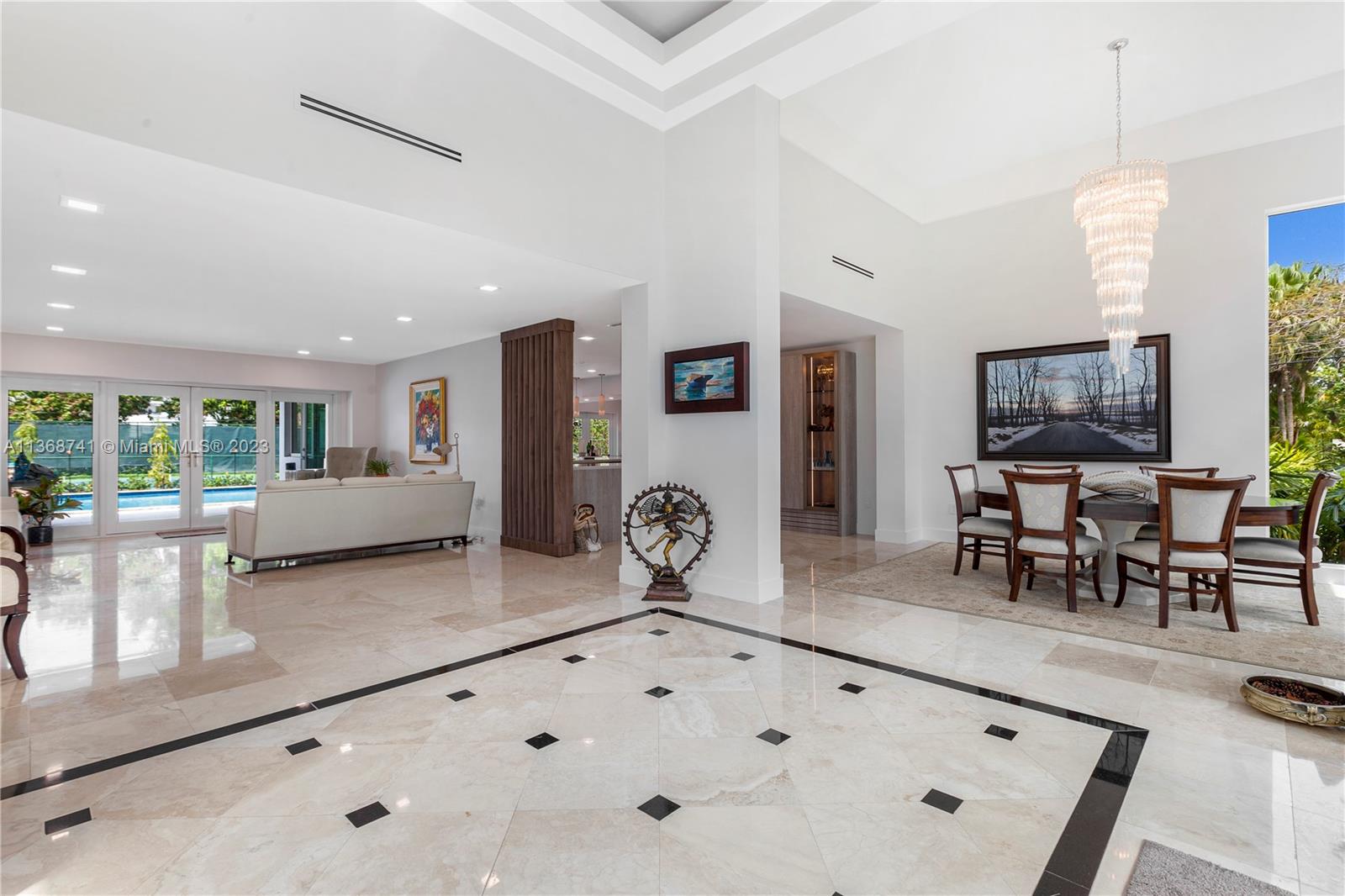 Celebrating the timeless beauty of this transitional contemporary masterpiece, where smart design and exquisite craftsmanship merge. This stunning home boasts 7 bedrooms, 8.5 baths, and impressive double-height ceilings. The layout features a grand room, formal dining with a full bar, and a state-of-the-art kitchen. It includes versatile spaces like a media room and office, plus a guest bedroom.