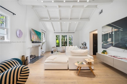 Just renovated 4 Bed / 4.5 bath on a 10,000 square foot lot on one of the most attractive streets in Mid-Beach. Stately Colonial-Mediterranean facade with excellent curb appeal. The giant great room features voluminous cathedral ceilings centered around an original fireplace.