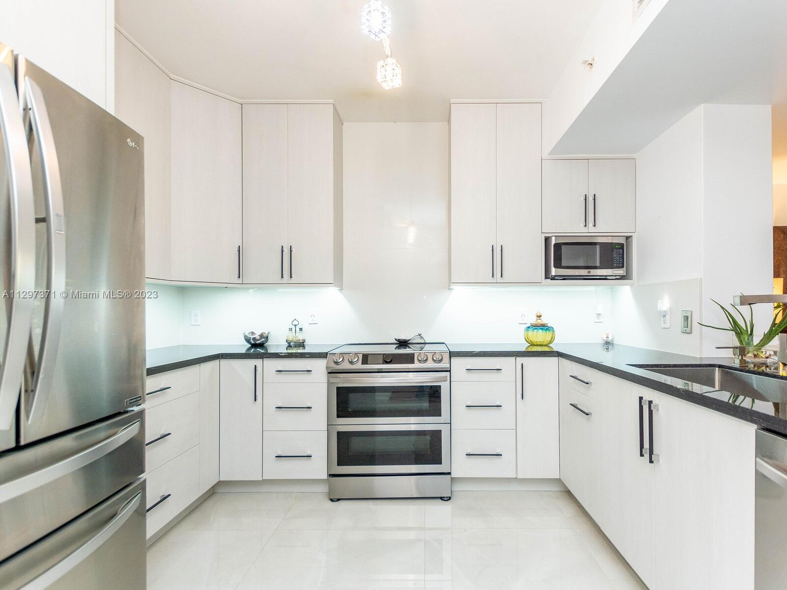 BEAUTIFULLY REMODELED AND SPACIOUS CORNER 2/2 WITH HIGH FLOOR PANORAMIC CITY VIEWS. BRIGHT AND WHITE APARTMENT WITH STUNNING LARGE RECTANGULAR PORCELAIN FLOORS, UPDATED CABINETS, STAINLESS STEEL APPLIANCES, CALCUTTA COUNTERTOPS, FULL-SIZED WASHER & DRYER, MODERN LIGHTING AND BUILT-OUT CLOSETS.