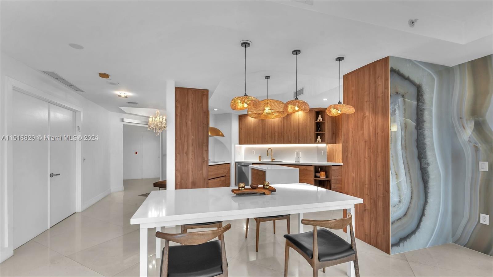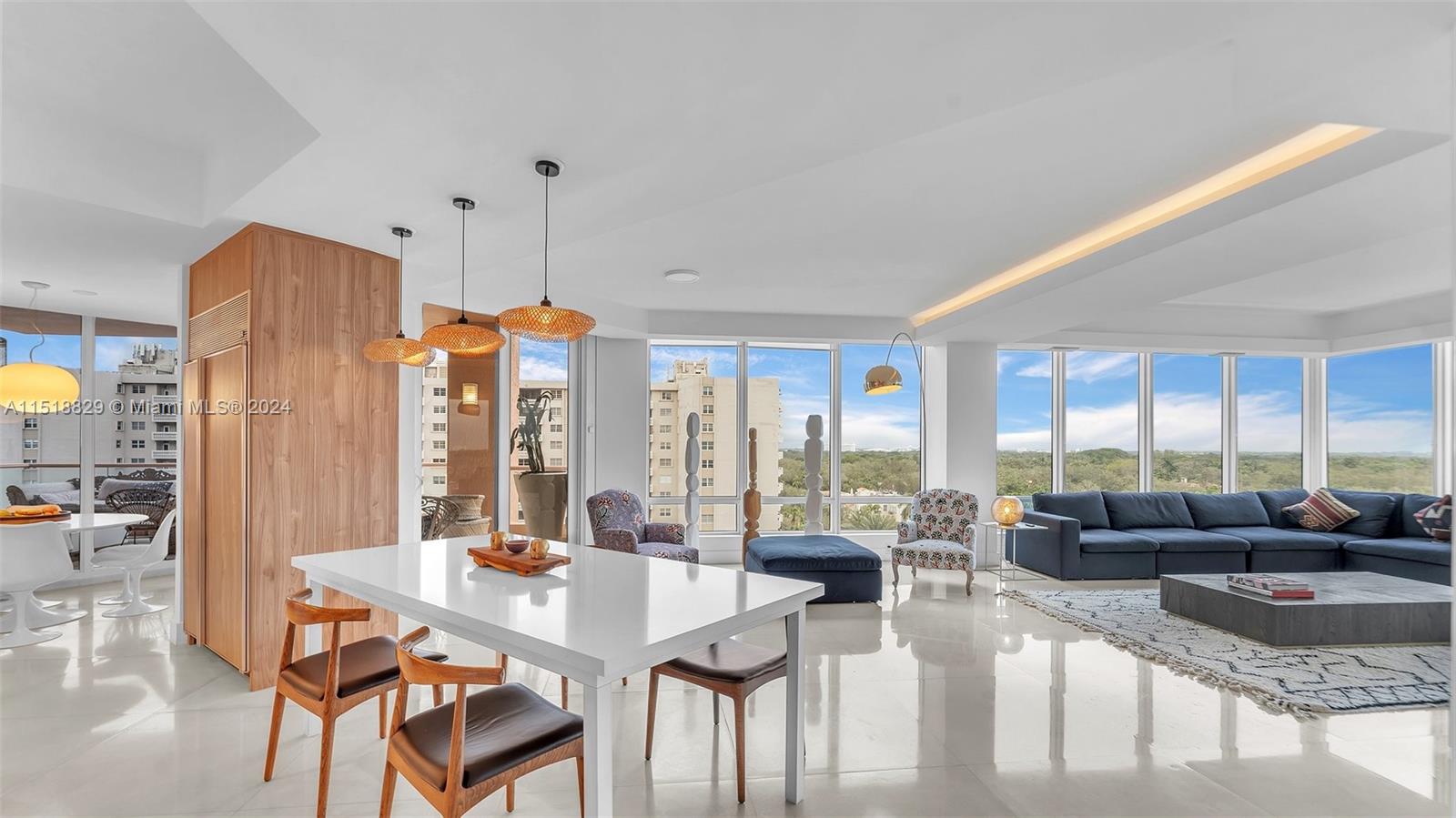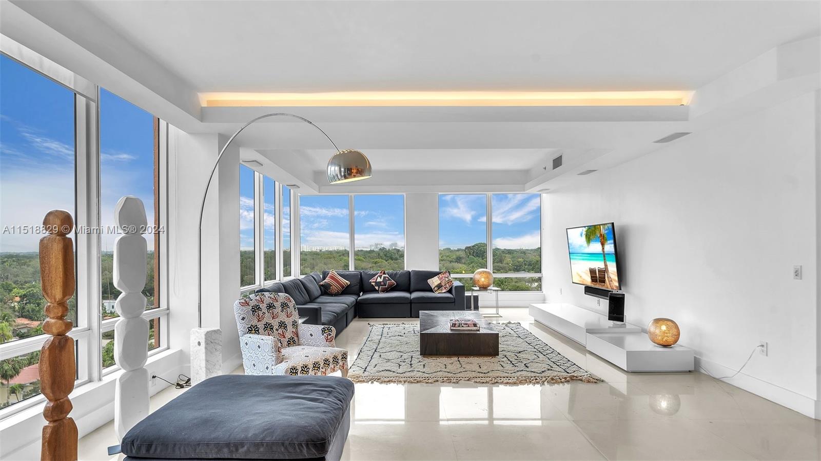 Presenting a unique sky palace, where a fully renovated kitchen takes center stage, seamlessly connecting to a west-facing terrace and a north-oriented living room adorned with floor-to-ceiling windows. Enjoying rare dual perspectives of bayside sunrises and cityscape sunsets, the master bedroom provides a tranquil retreat, featuring a bathroom with dual sinks, dual commodes, and captivating city views. Convenience is prioritized with a combined laundry/mudroom. This unparalleled gem stands as the sole waterfront condominium in Coral Gables, offering 5-star amenities, three-tier security, a dedicated concierge, waterfront restaurant, beauty salon, fitness center, spa rooms, illuminated Har-Tru tennis courts, marina, putting greens, and a vibrant community.