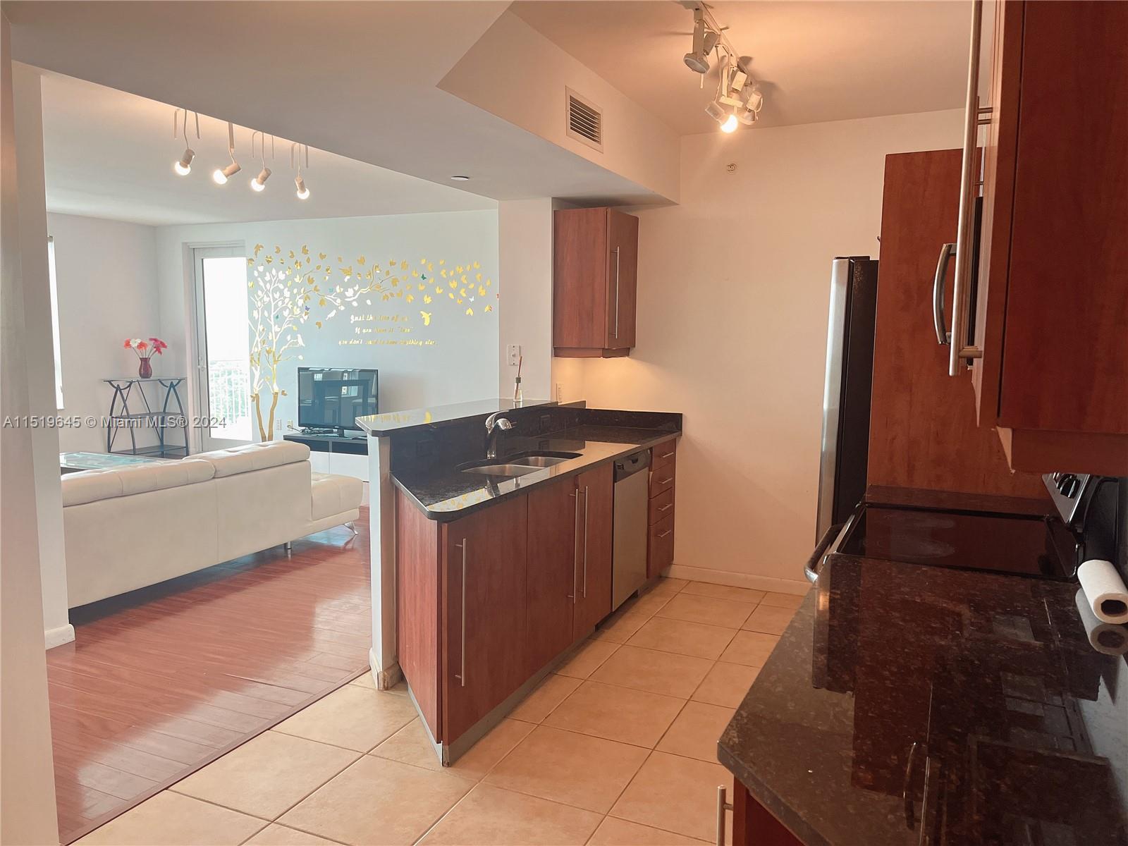 Spectacular panoramic views of Miami, downtown, Key Biscayne and the ocean. Very bright 3Br/2Ba unit with high ceilings, granite countertops and SS appliances. Great closet space and split floor plan. 2 parking spaces. Great building with pool, gym, concierge, valet in spectacular location in downtown Dadeland.