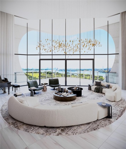 Step into the epitome of luxury living with this extraordinary half-floor residence designed by the renowned architect Zaha Hadid, offering a museum-like experience in the sky. The architectural marvel has breathtaking water views and captivating cityscapes. The great room, perfect for entertaining, exudes elegance and versatility, making it ideal for intimate family brunches or grand gatherings.
