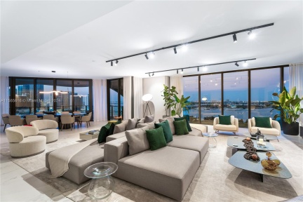 From the greeting of the doorman and the front desk, you will feel welcomed into a new world of astonishing luxury. Step off the private elevator to the 44th floor and step into this mesmerizing 4 bed 5.5 bath unit. White matte kitchen cabinetry from Poliform with black polished quartz countertops. Sub-zero and Gaggenau appliances hidden to make the kitchen part of the decor.