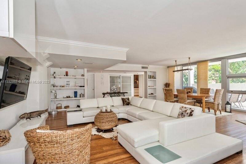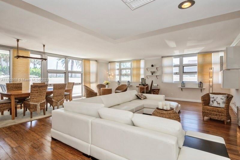 This bright & lovely furnished unit with floor to ceiling impact windows & doors overlooks the pool area.rnSilver Thatch has resort style amenities, 2 Pools, Tennis, Pickle Ball Boce BBQ, Game Room, Fitness Room, Sauna 7 garage Parking. Complex is just opposite the Ocean with easy Beach Access. Convenient to shops & restaurants.rnGreat Location....Easy to show call listing agent.