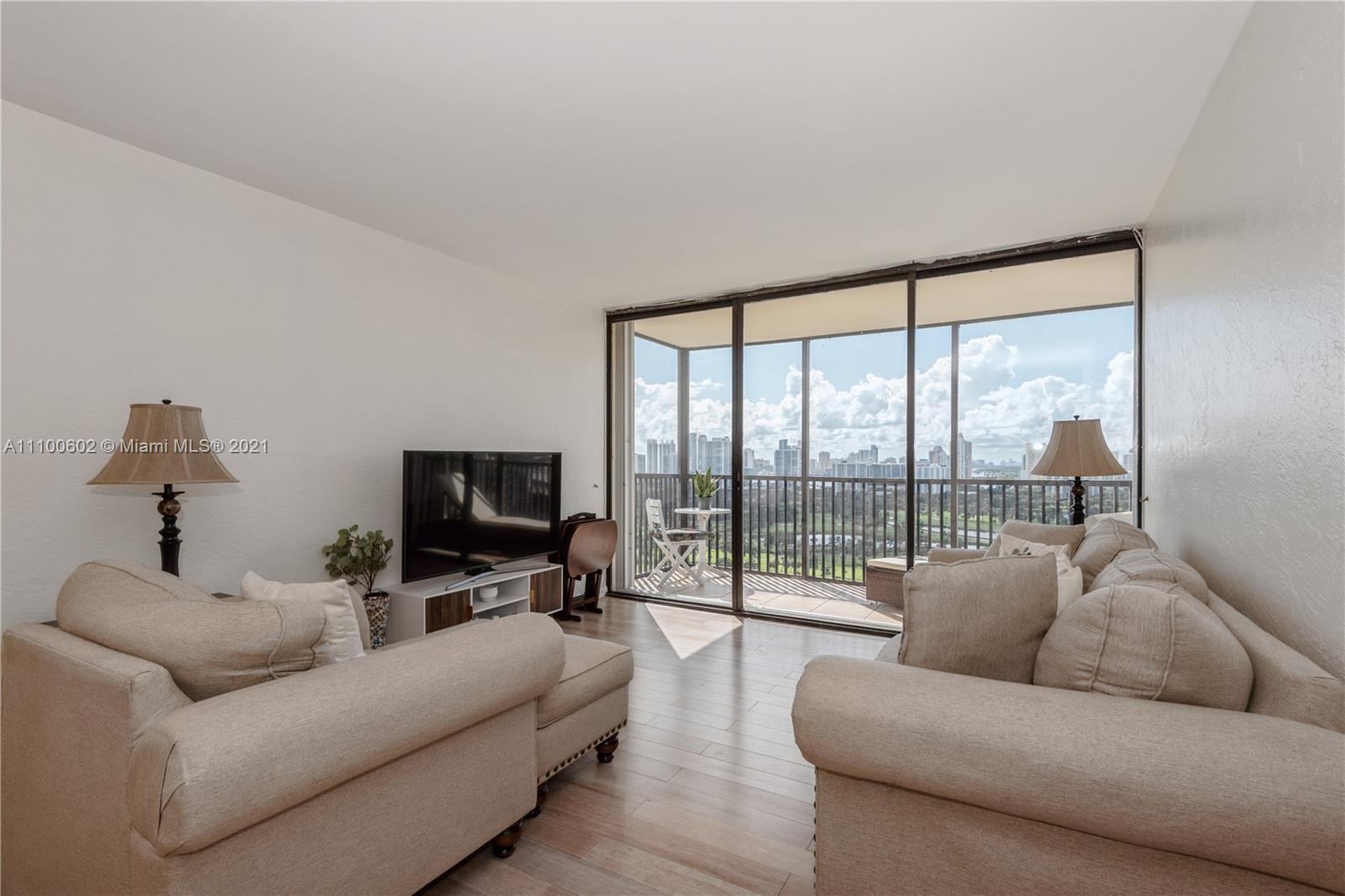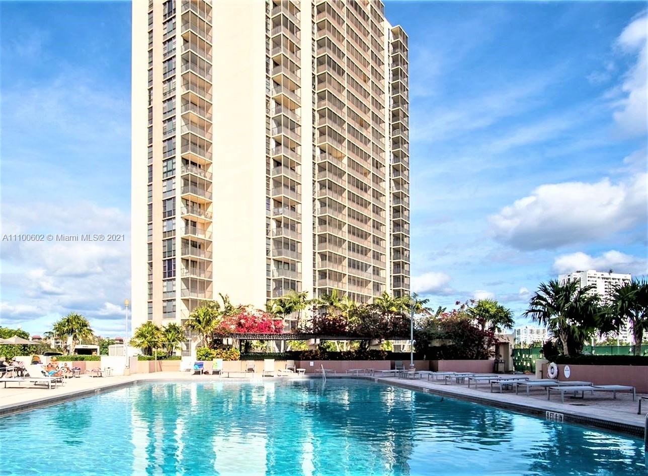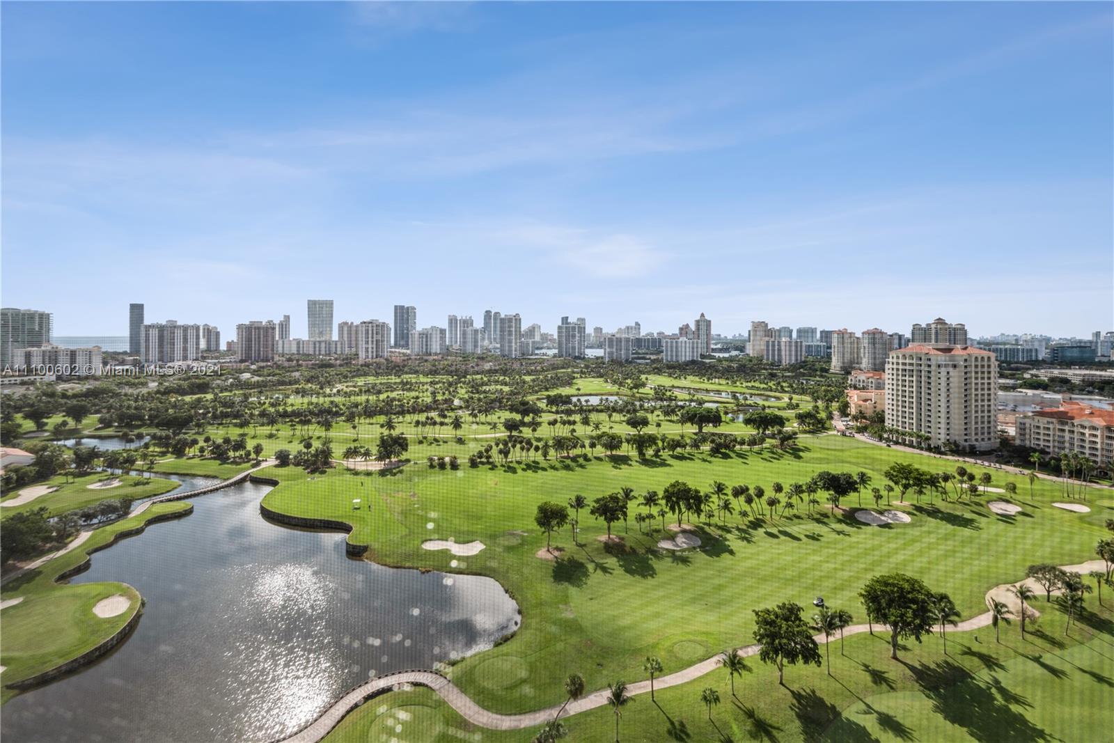 Panoramic view of Turnberry Country Club Golf Course from the corner unit apartment. Two bedrooms and 2 bathrooms, tile and carpet floor. Renovated lobby and elevators. The building has passed the 40 years certification and its working in the 50 years recertification.