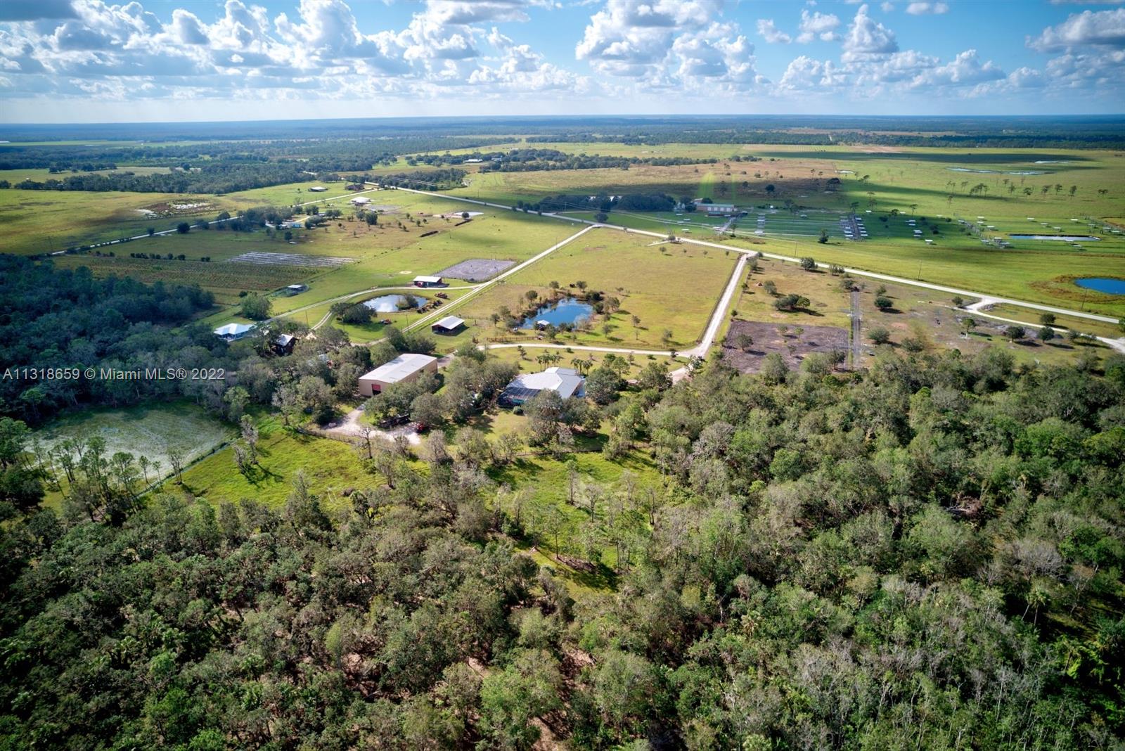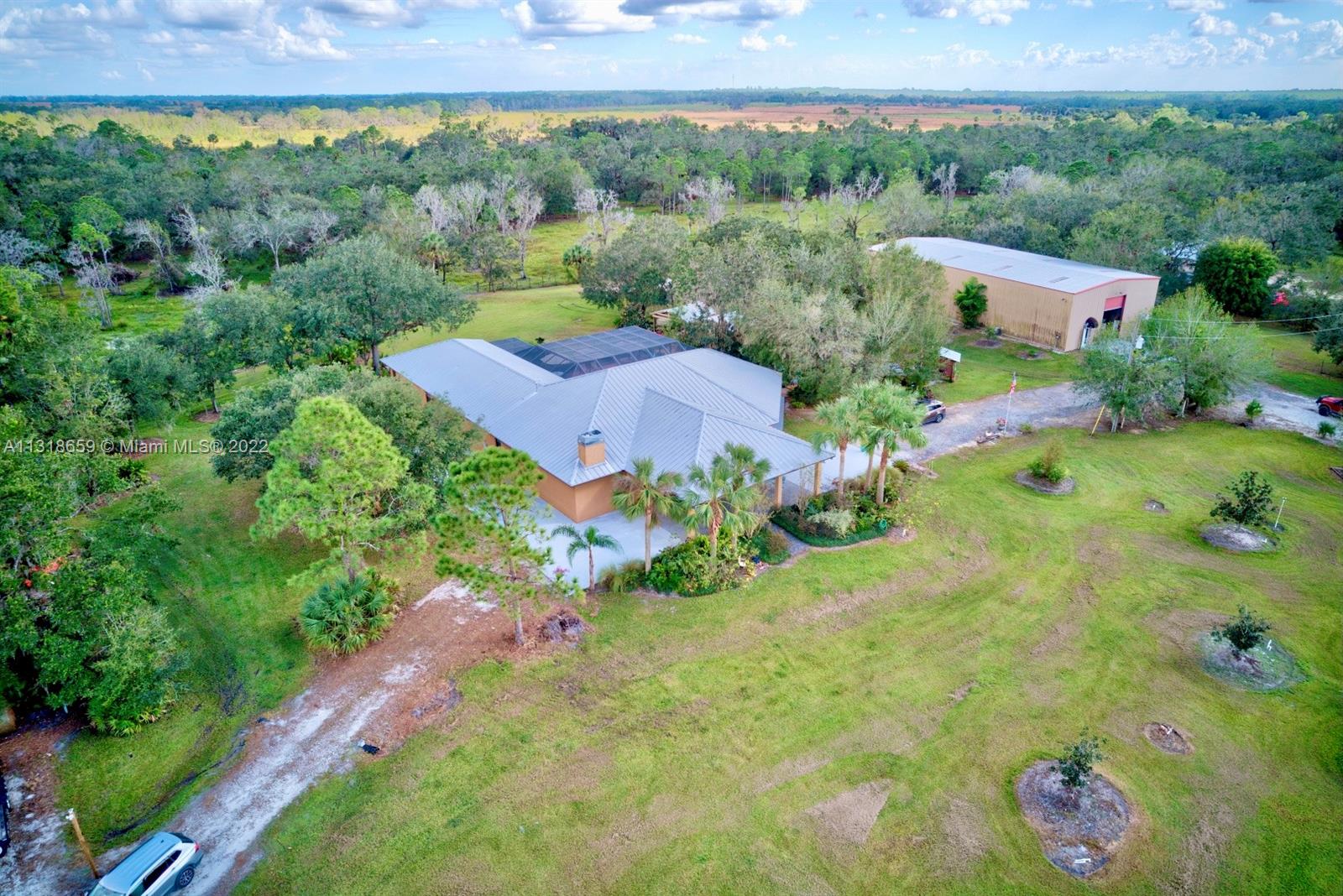 10 acres in a peaceful, beautiful, serene area of Florida, close to Lake Placid. A quaint cottage with a wrap around porch and cathedral ceilings, ideal for your weekend getaways or main home with plenty of space for expansion. A 50 x 24 barn with its own well, a 12 x 8 shed, and 40 x 8 storage container neatly tucked away in the back of the property.