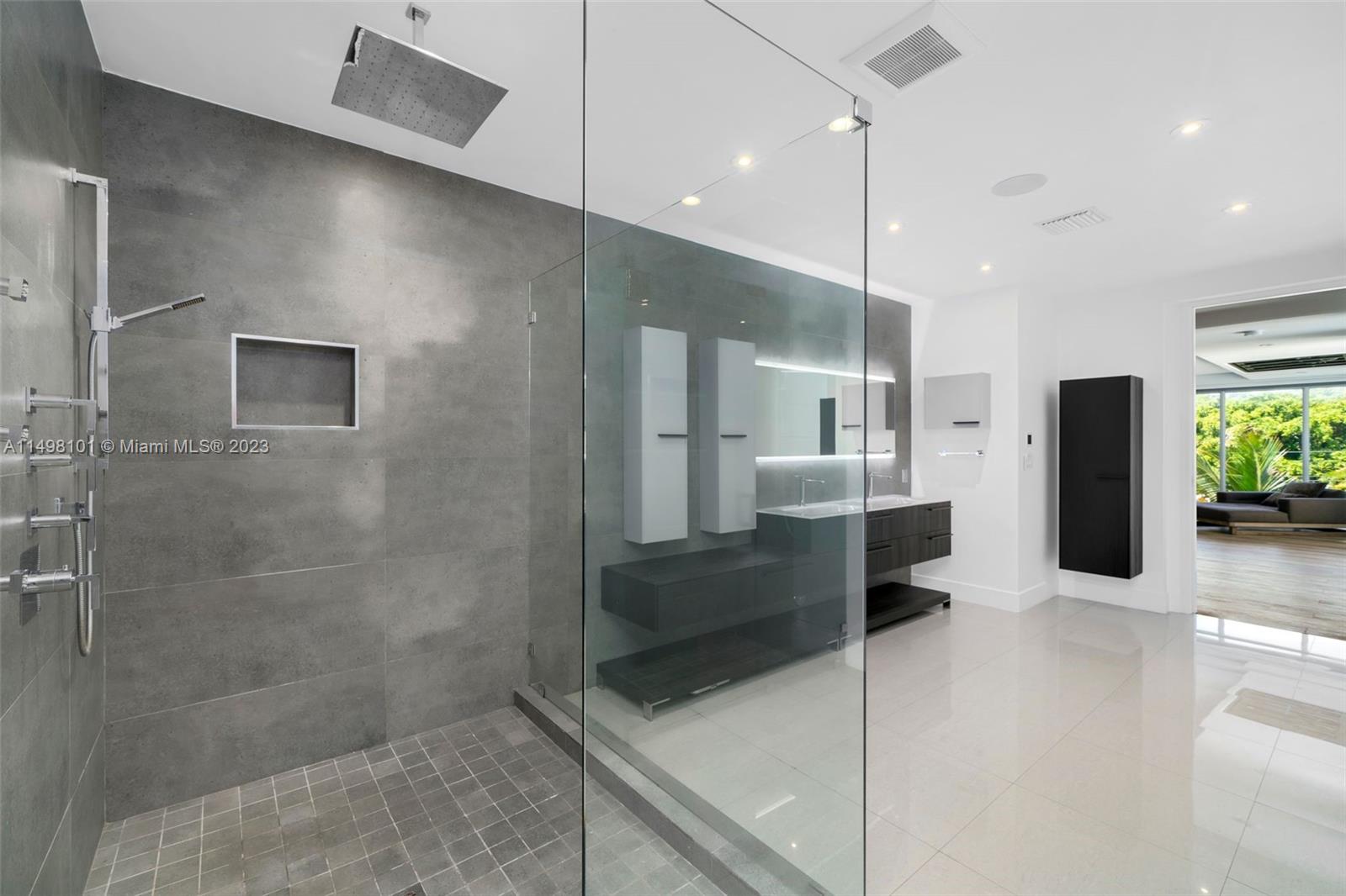 Welcome to this sleek three-story smart home, just a block from the ocean. The kitchen boasts top-notch Sub-Zero, Wolf, and Miele appliances, along with stone countertops and custom Mia Cucina cabinetry. A glass elevator seamlessly connects the spacious rooms.rnThe third-floor primary suite spans nearly 2,000 square feet, offering custom double walk-in closets, a separate office area, and floor-to-ceiling windows overlooking tropical landscaping. A rooftop deck with a TV and audio system adds an extra layer of luxury. The primary bath features marble floors, a slate shower, and double vanities.rnThe private pool area sits on a custom wood deck with a high-end A/V system, creating a lush retreat. Experience the epitome of modern living in this sophisticated coastal residence.