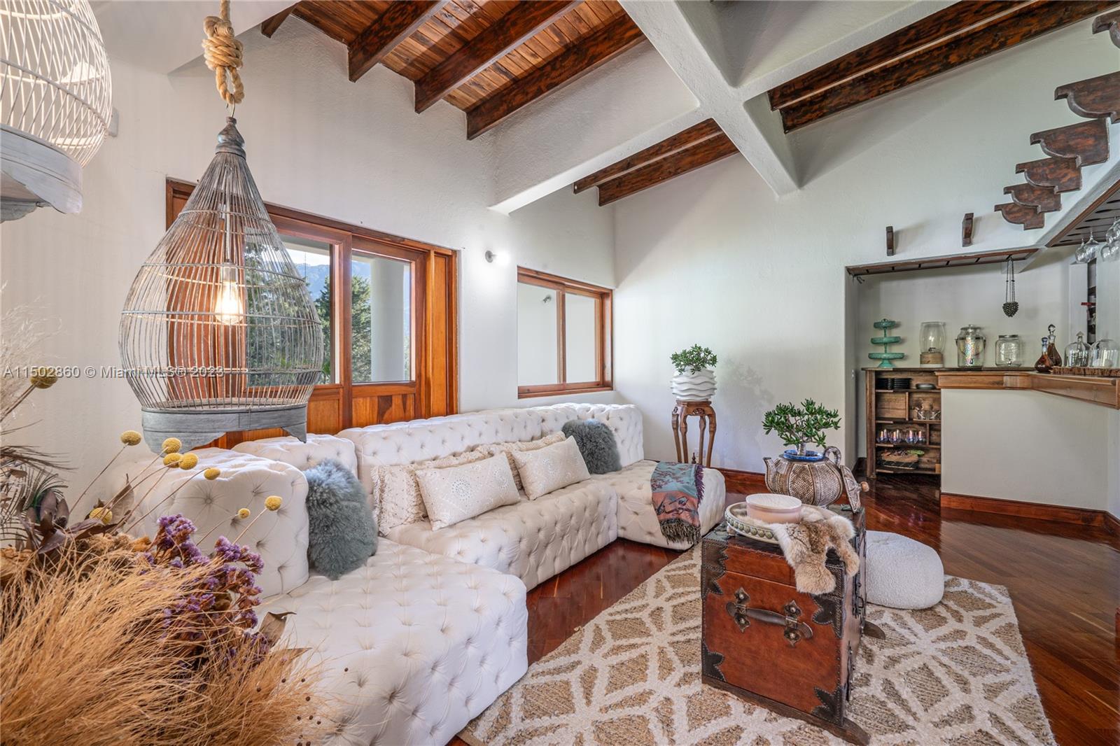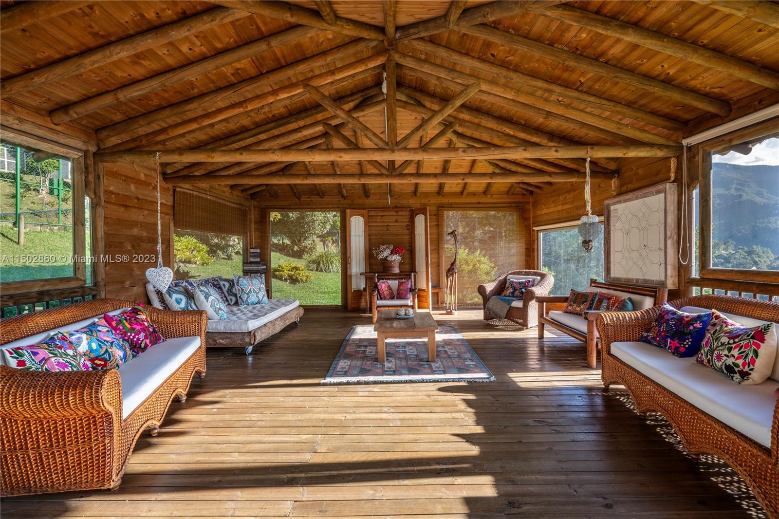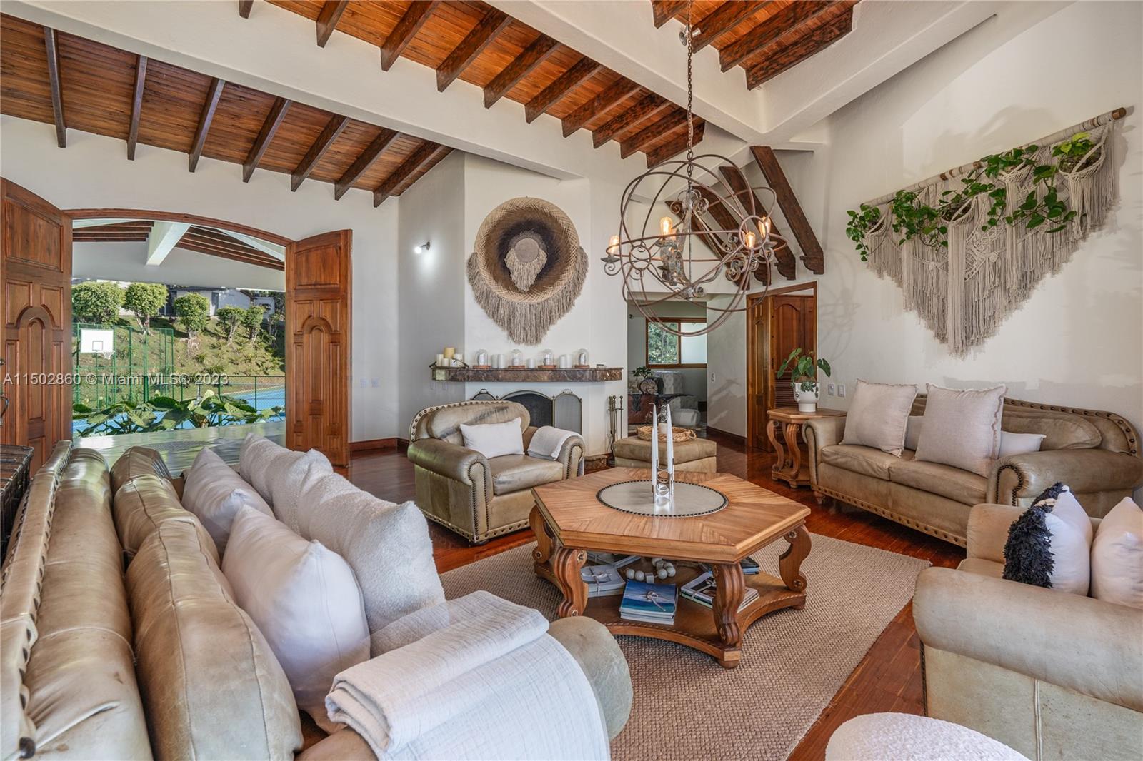 “Spectacular property in Envigado, Antioquia (Medellín, Colombia), offers a life of luxury, 24-hour security, and panoramic views of the city. Spacious land (approximately 1.7 acres) with 11,087 square feet of living space, built in 2001. Main house: 6 bedrooms, 8 bathrooms, master suite on the first floor with 2 bathrooms; all bedrooms have their own bathroom and closet. Guest house with private bedroom and bathroom. This property includes 4 stables with bathrooms, 2 kitchens, kitchen with island, tennis court, heated jacuzzi, pool, fireplaces. 2 semi-covered garages, space to park up to 30 cars. Completely fenced, electric remote control at the main entrance.”