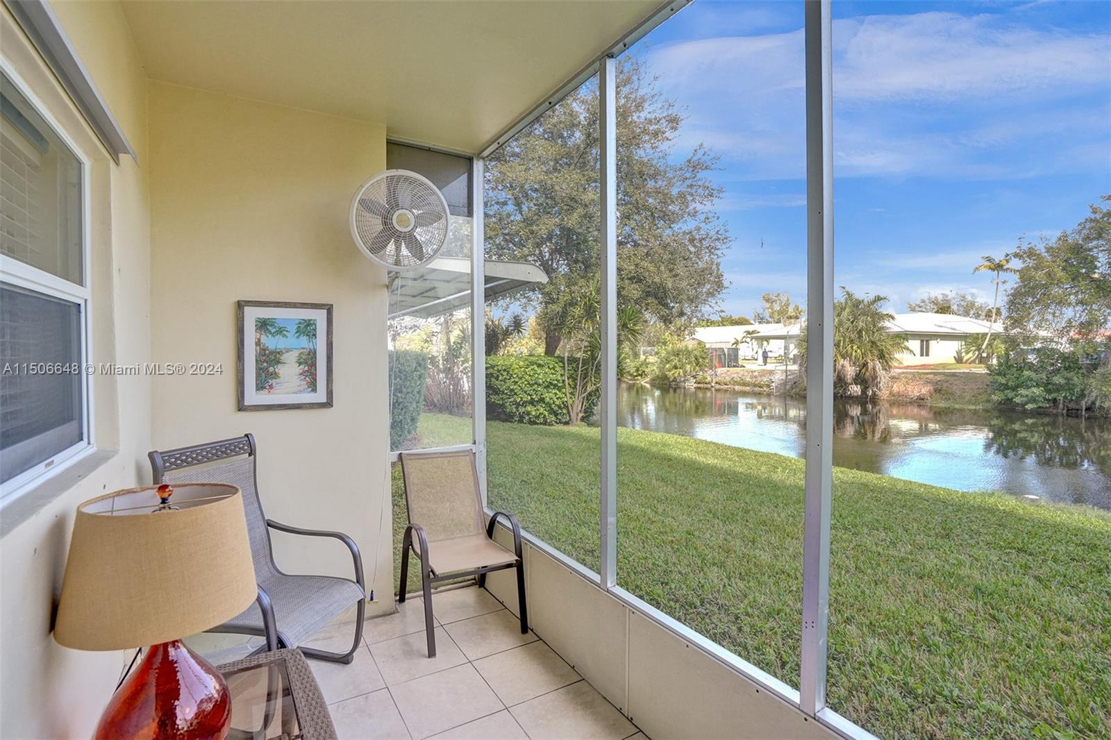 Beautiful 1 bedroom overlooking the lake. This unit is completely redone and ready to move-in. Ceramic floors throughout the unit.New A/C 2023. Stainless steel appliances and recess light in the kitchen. Screened balcony ,hurricane windows. Fully furnished.This 55+ community offers 2 pools,2 club house,billards,BBQ/picnic area,walking distance to public golf course.this won’t last