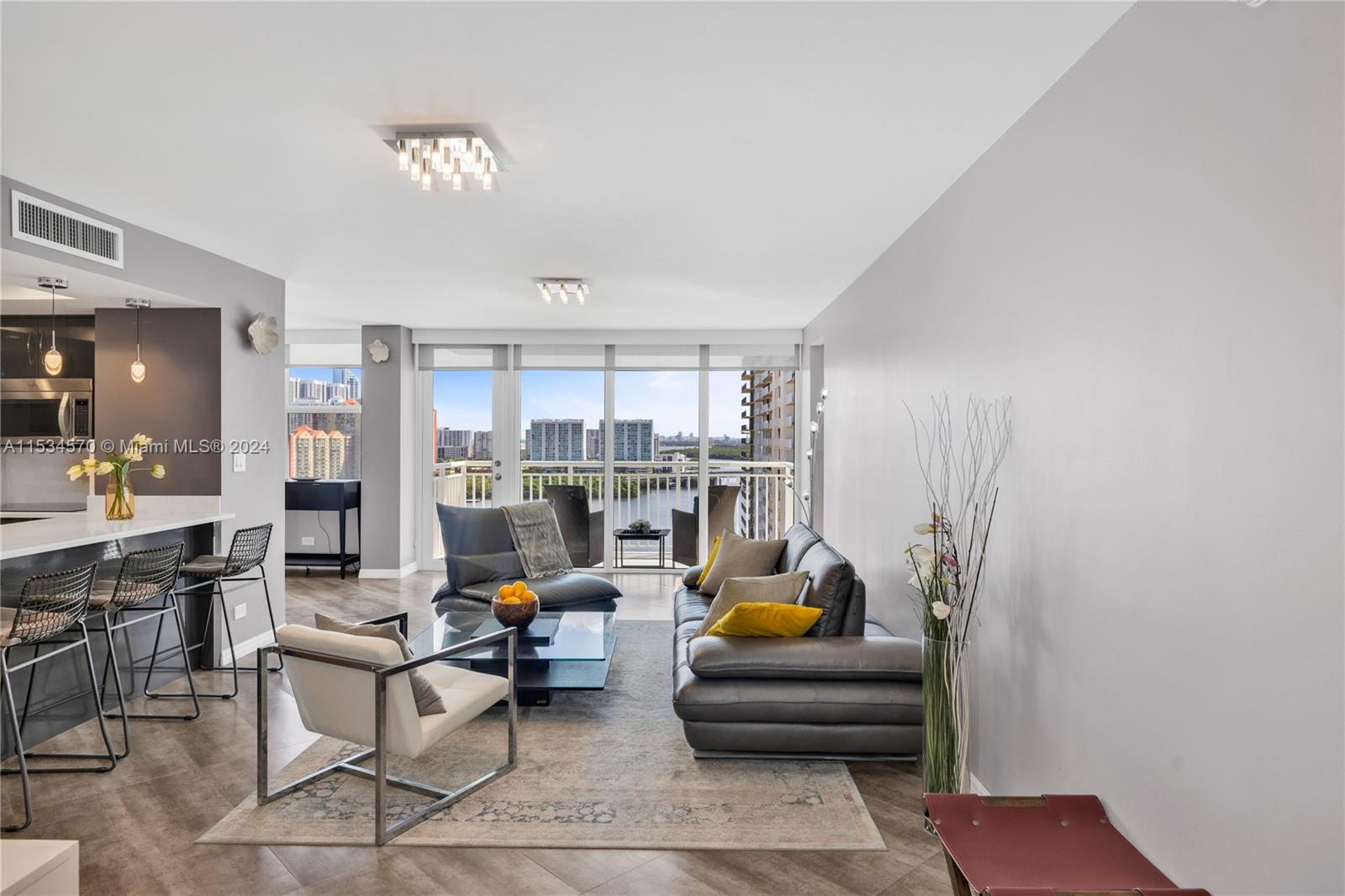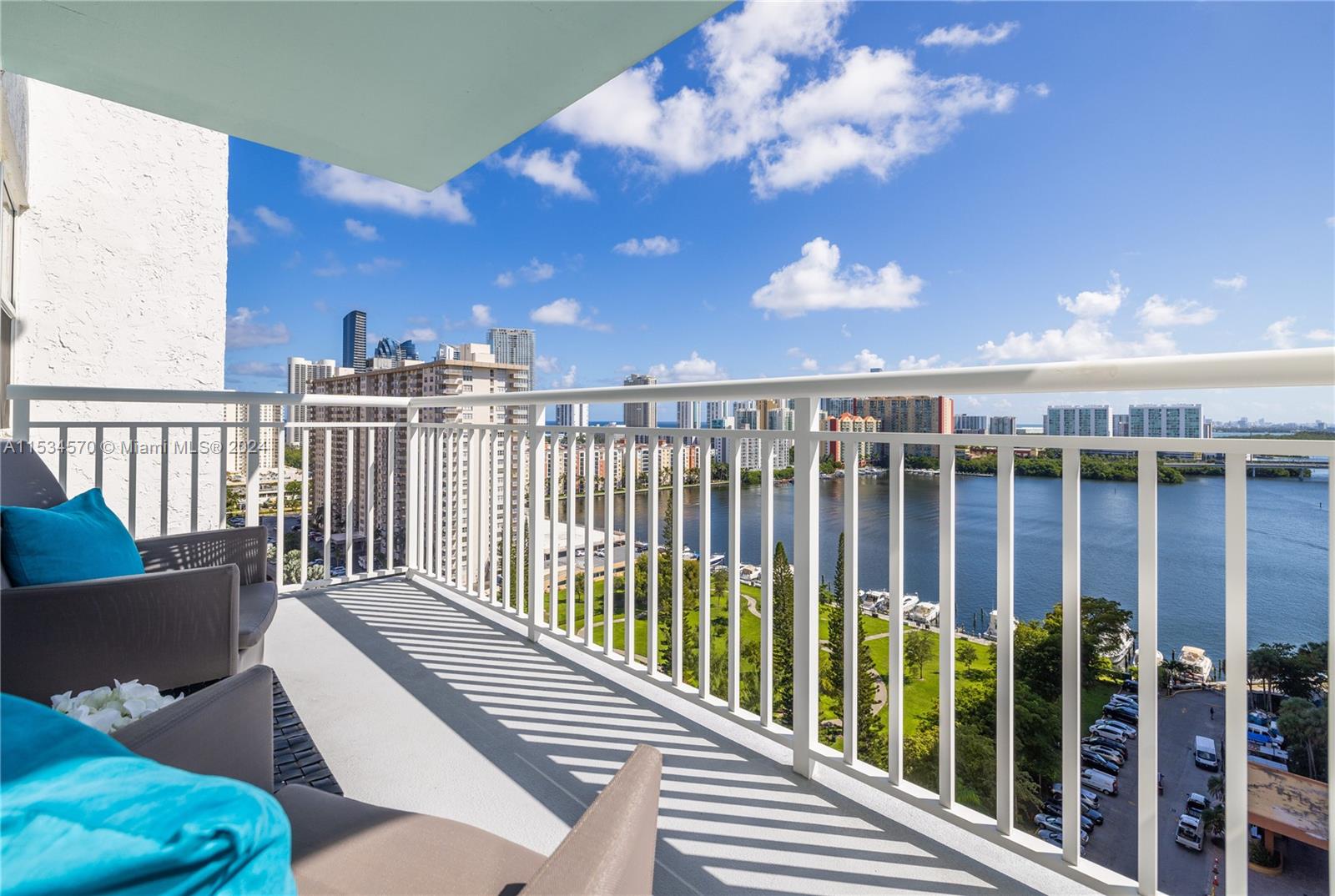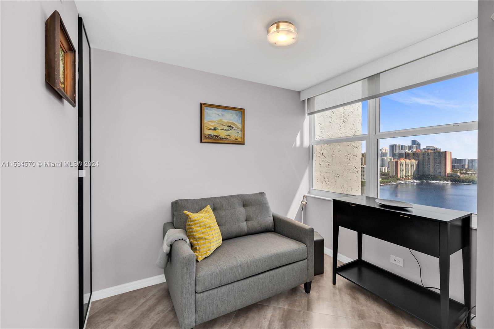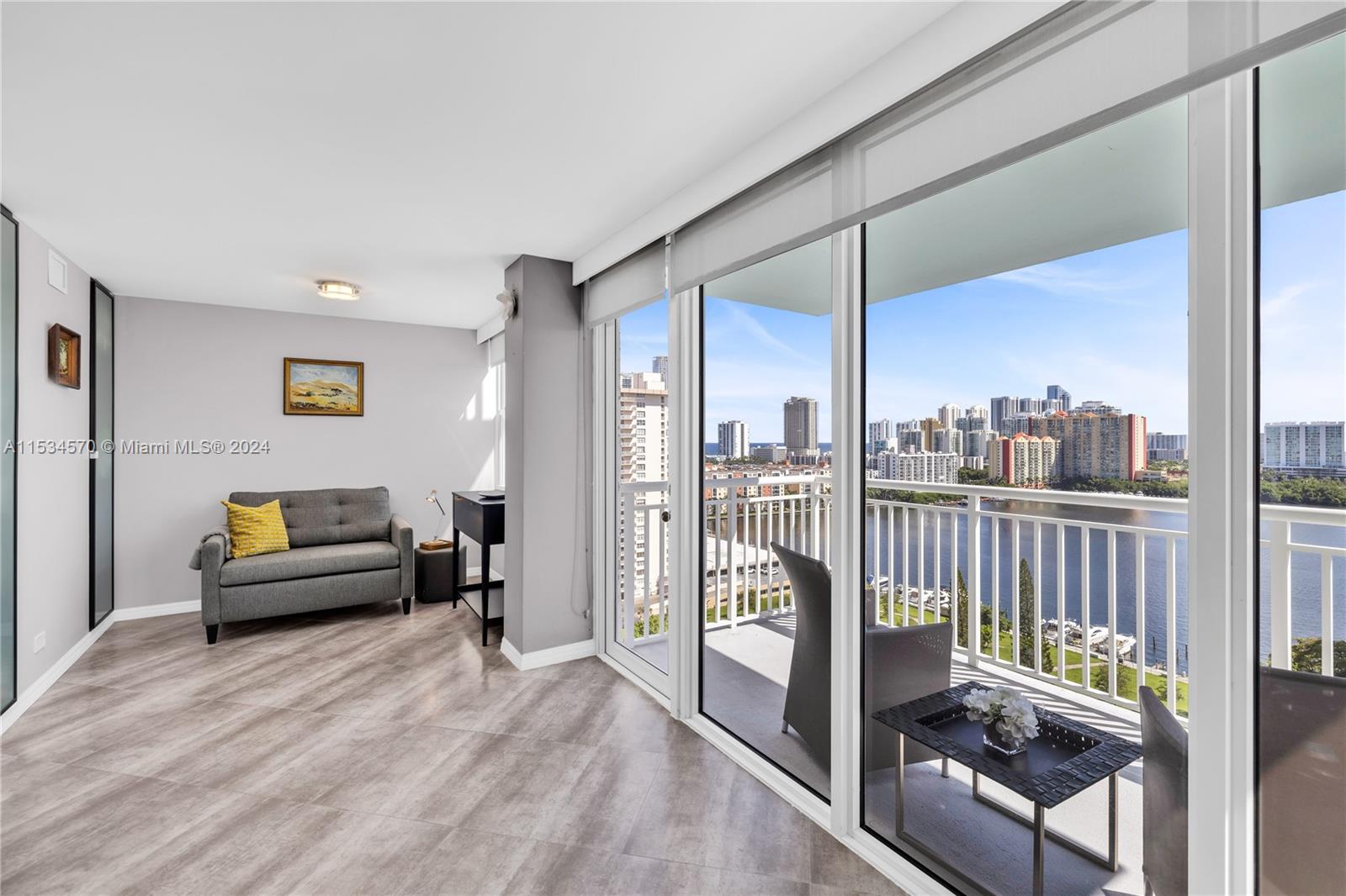 Beautiful 1 BD 2 Full BA unit with amazing water and city views located half a mile from the beach. Ideal for your primary home! This condo is completely tastefully done: smooth ceilings and walls, porcelain floors, open kitchen with quartz countertops and stainless steel appliences, lots of closets, all windows are high impact, daylight blinds. The sizes of closet and main BA were increased. AC unit was replaced in 2017. Laundry room is located in a hallway. Apartment has an assigned storage bin. NO rentals allowed by association. HOA fee includes water, WIFI, Cable TV, AC maintenance, Parking space. Special assessment will be paid by Seller at the closing. Must see! Please request a walk-through video. Very easy to show.