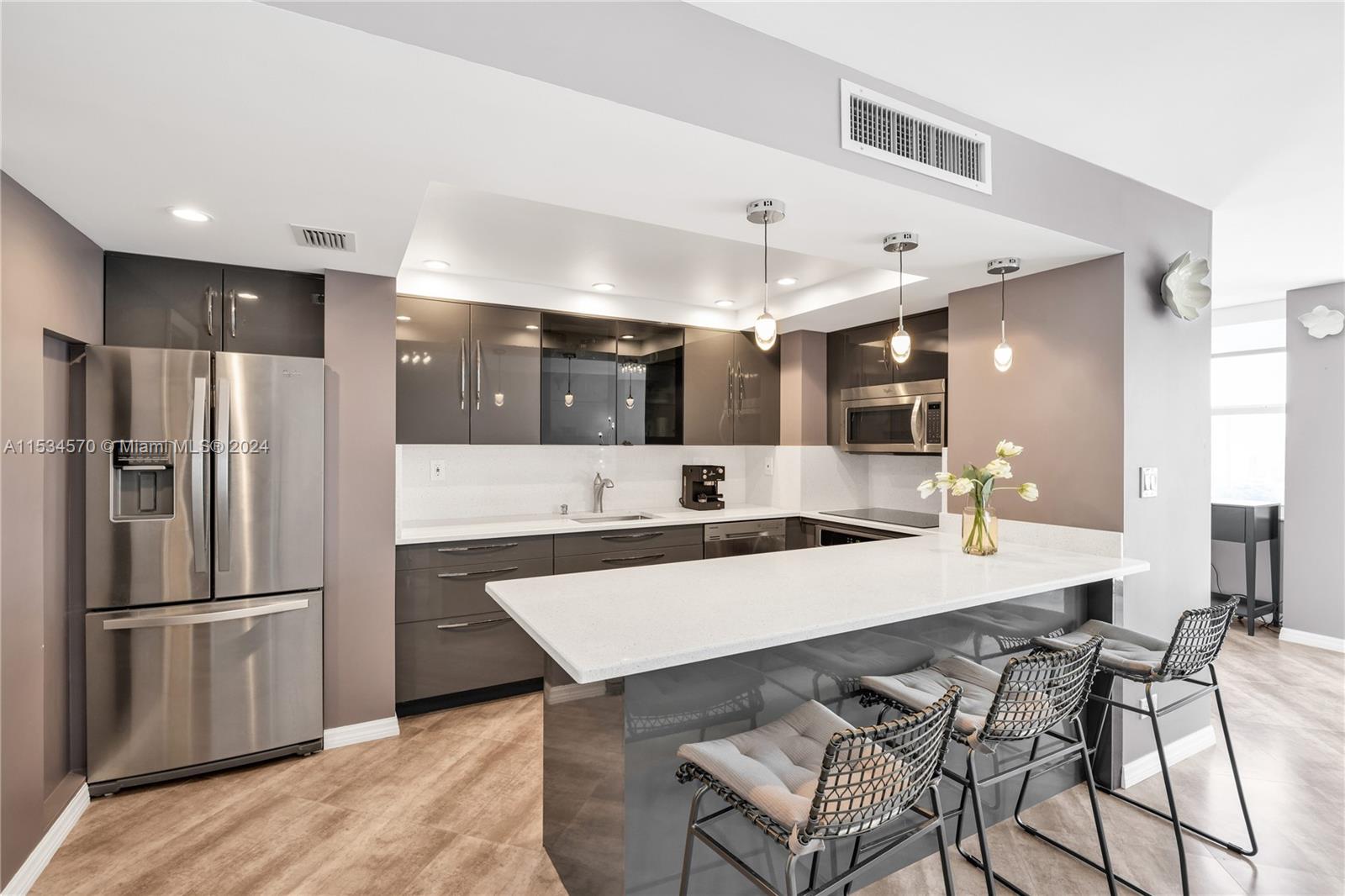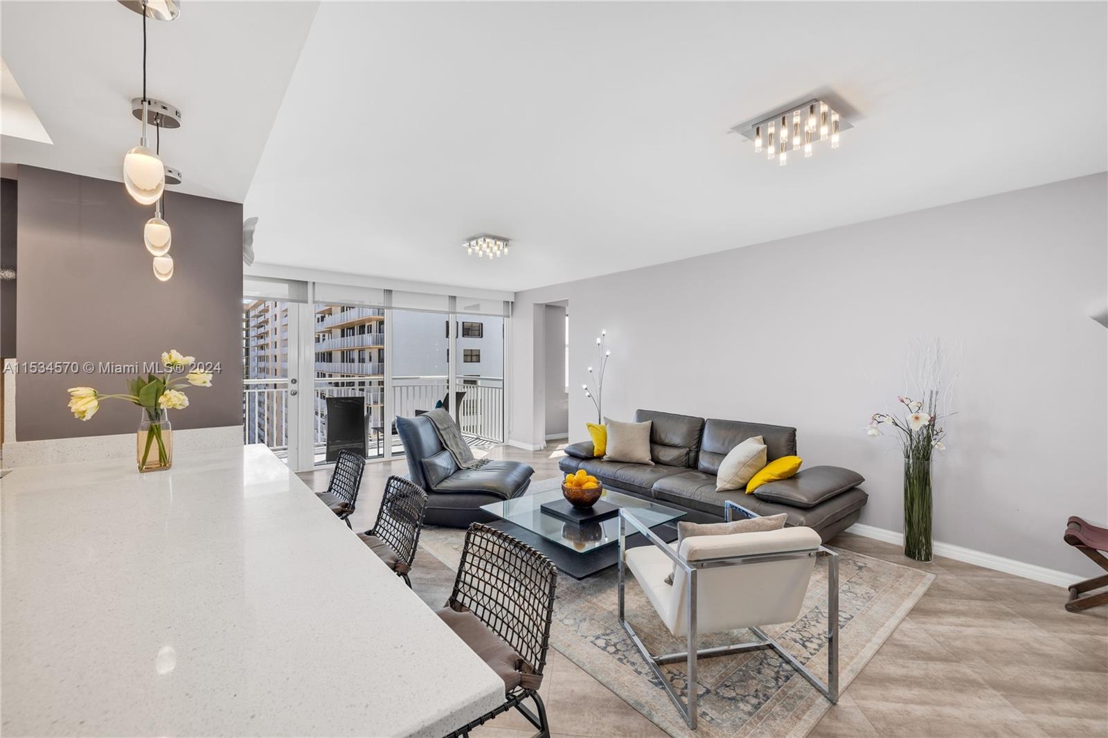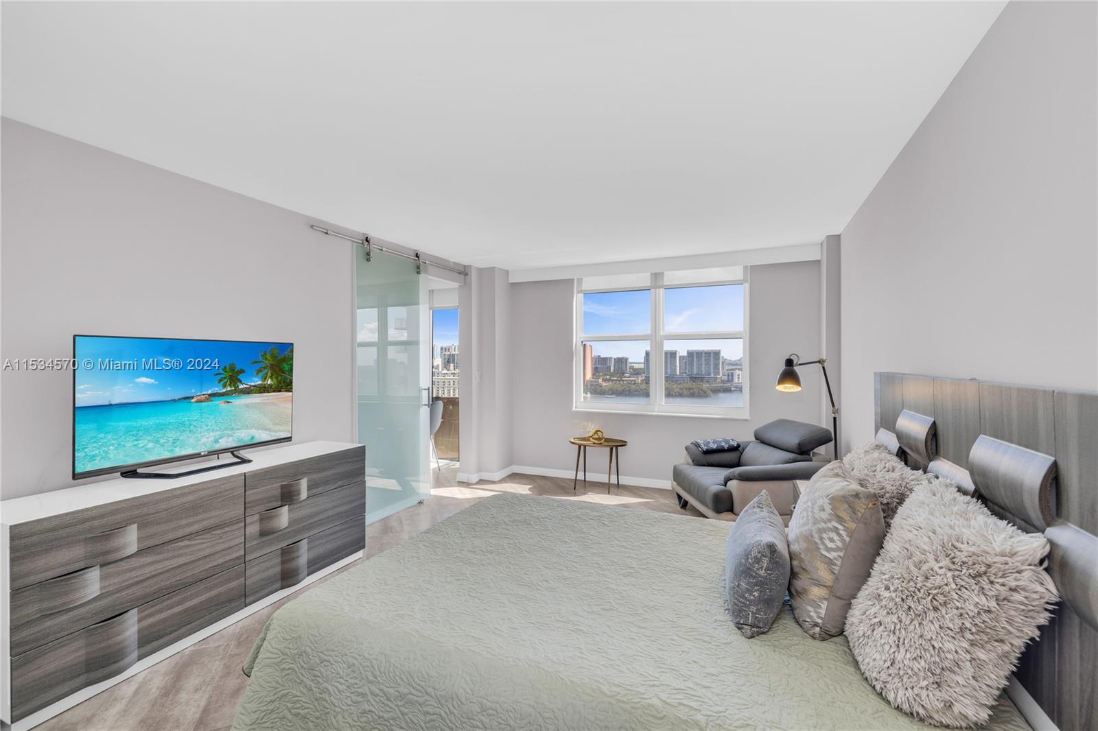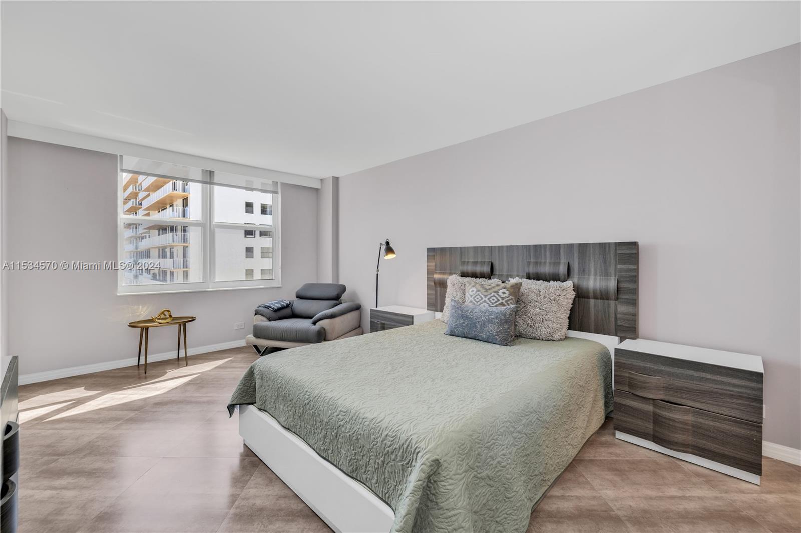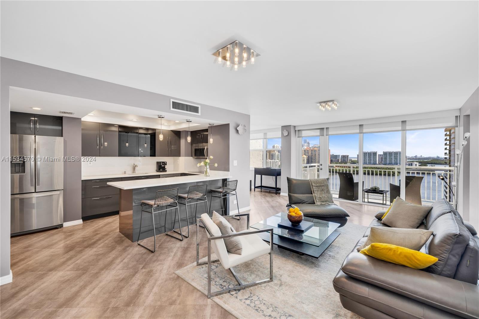 Beautiful 1 BD 2 Full BA unit with amazing water and city views located half a mile from the beach. Ideal for your primary home! This condo is completely tastefully done: smooth ceilings and walls, porcelain floors, open kitchen with quartz countertops and stainless steel appliences, lots of closets, all windows are high impact, daylight blinds. The sizes of closet and main BA were increased. AC unit was replaced in 2017. Laundry room is located in a hallway. Apartment has an assigned storage bin. NO rentals allowed by association. HOA fee includes water, WIFI, Cable TV, AC maintenance, Parking space. Special assessment will be paid by Seller at the closing. Must see! Please request a walk-through video. Very easy to show.