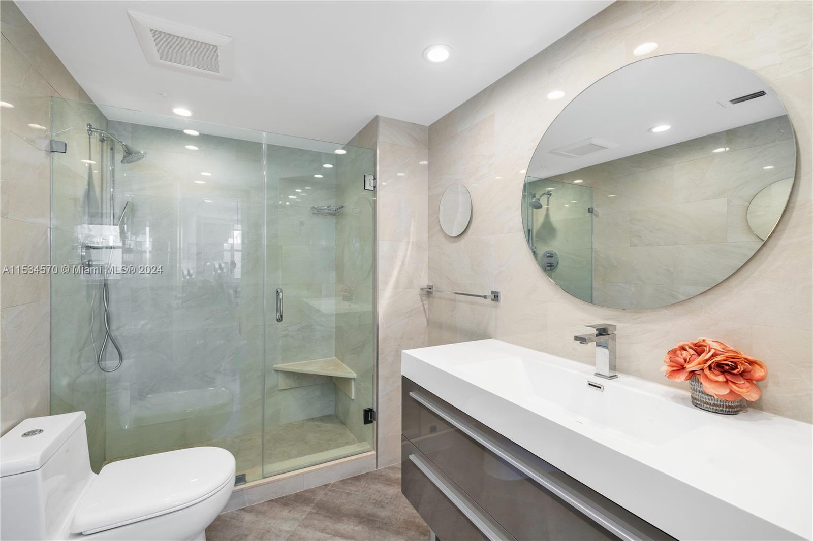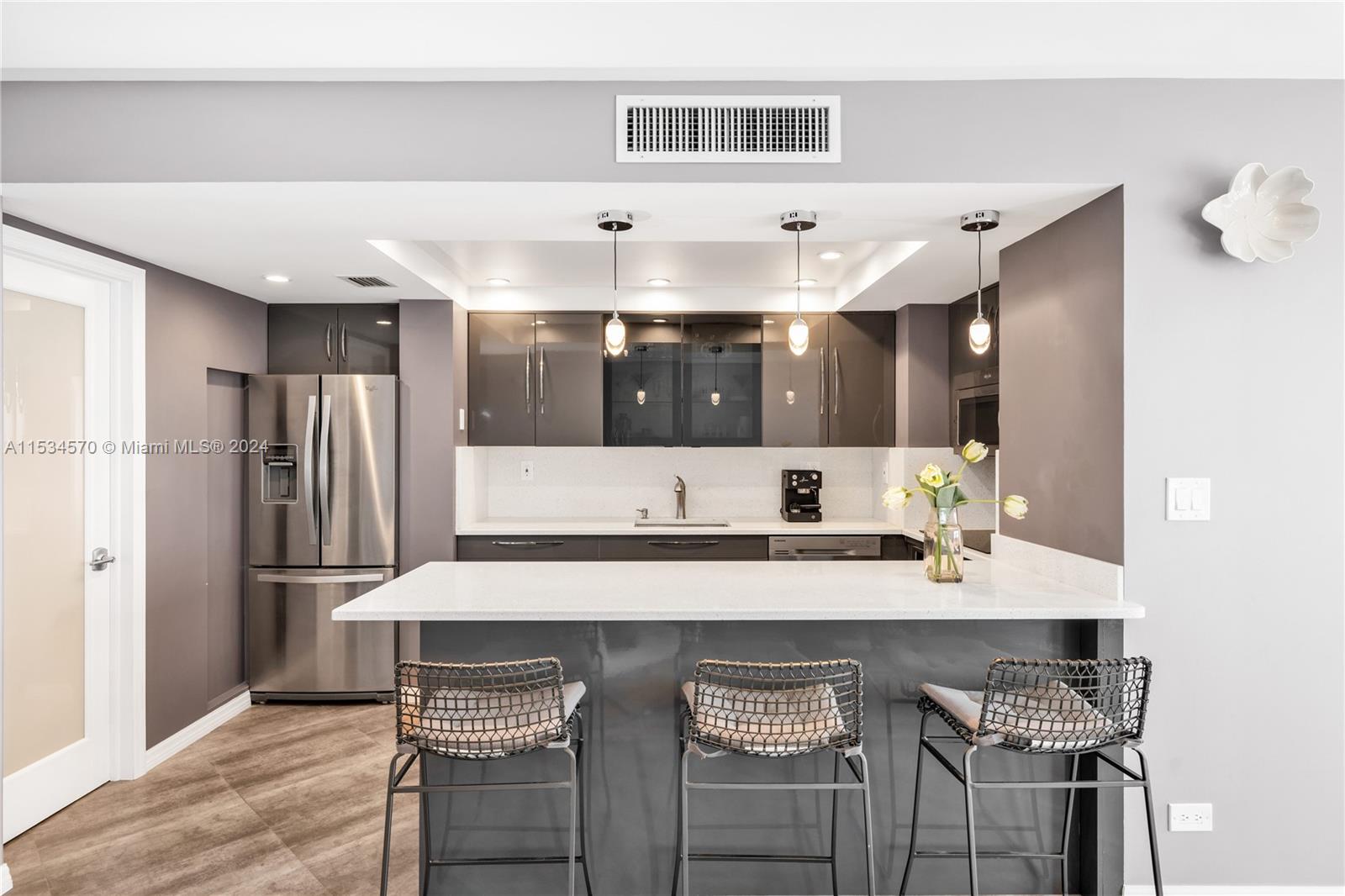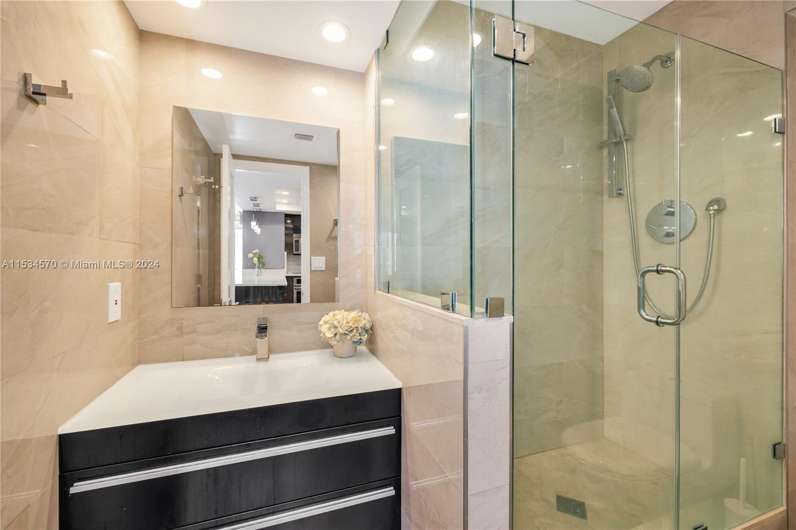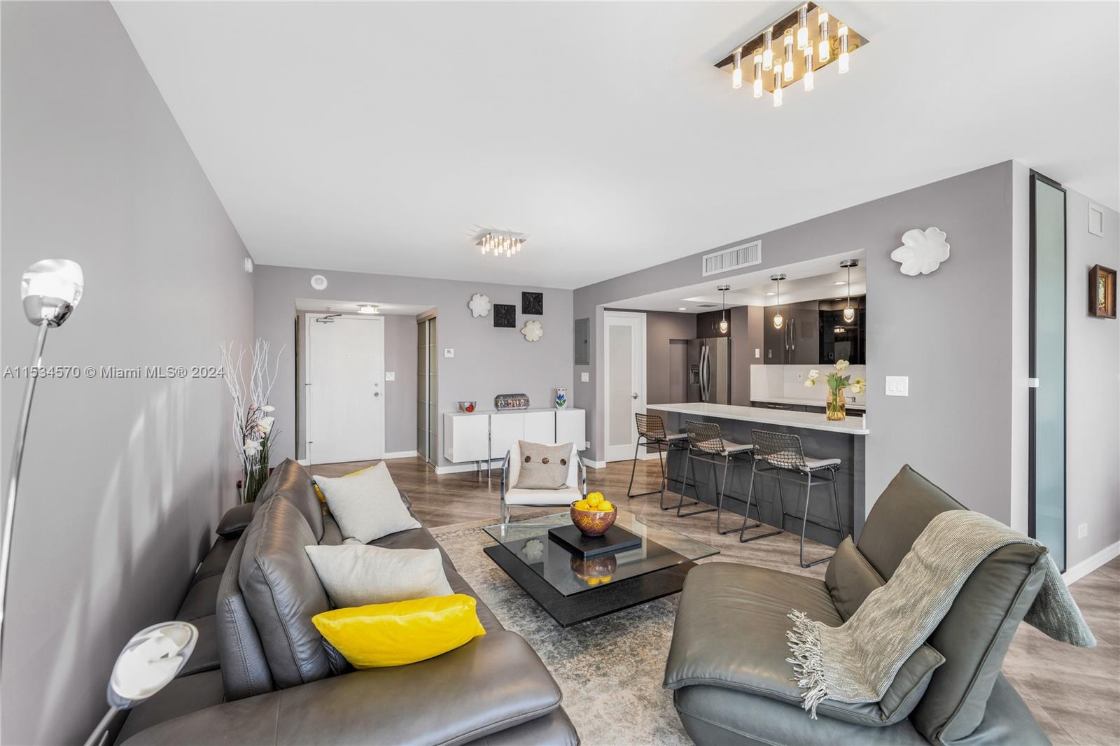 Beautiful 1 BD 2 Full BA unit with amazing water and city views located half a mile from the beach. Ideal for your primary home! This condo is completely tastefully done: smooth ceilings and walls, porcelain floors, open kitchen with quartz countertops and stainless steel appliences, lots of closets, all windows are high impact, daylight blinds. The sizes of closet and main BA were increased. AC unit was replaced in 2017. Laundry room is located in a hallway. Apartment has an assigned storage bin. NO rentals allowed by association. HOA fee includes water, WIFI, Cable TV, AC maintenance, Parking space. Special assessment will be paid by Seller at the closing. Must see! Please request a walk-through video. Very easy to show.