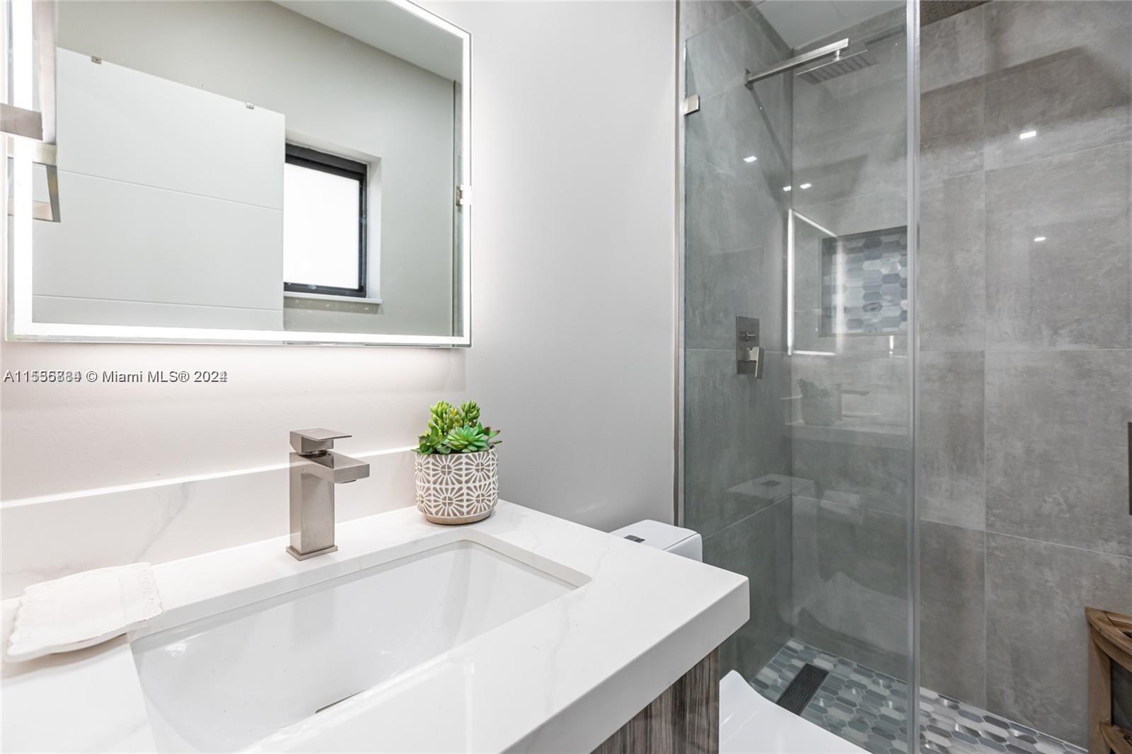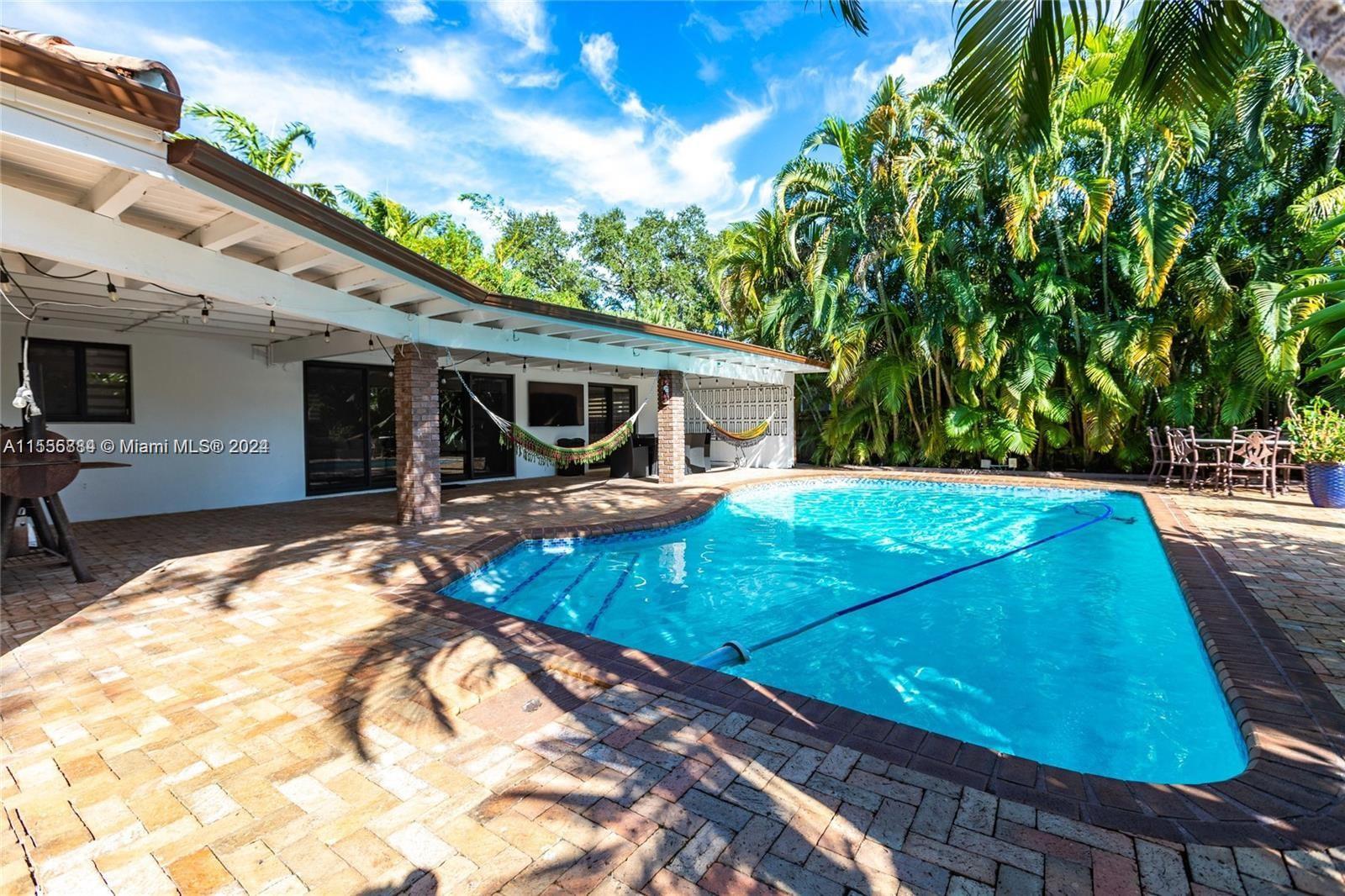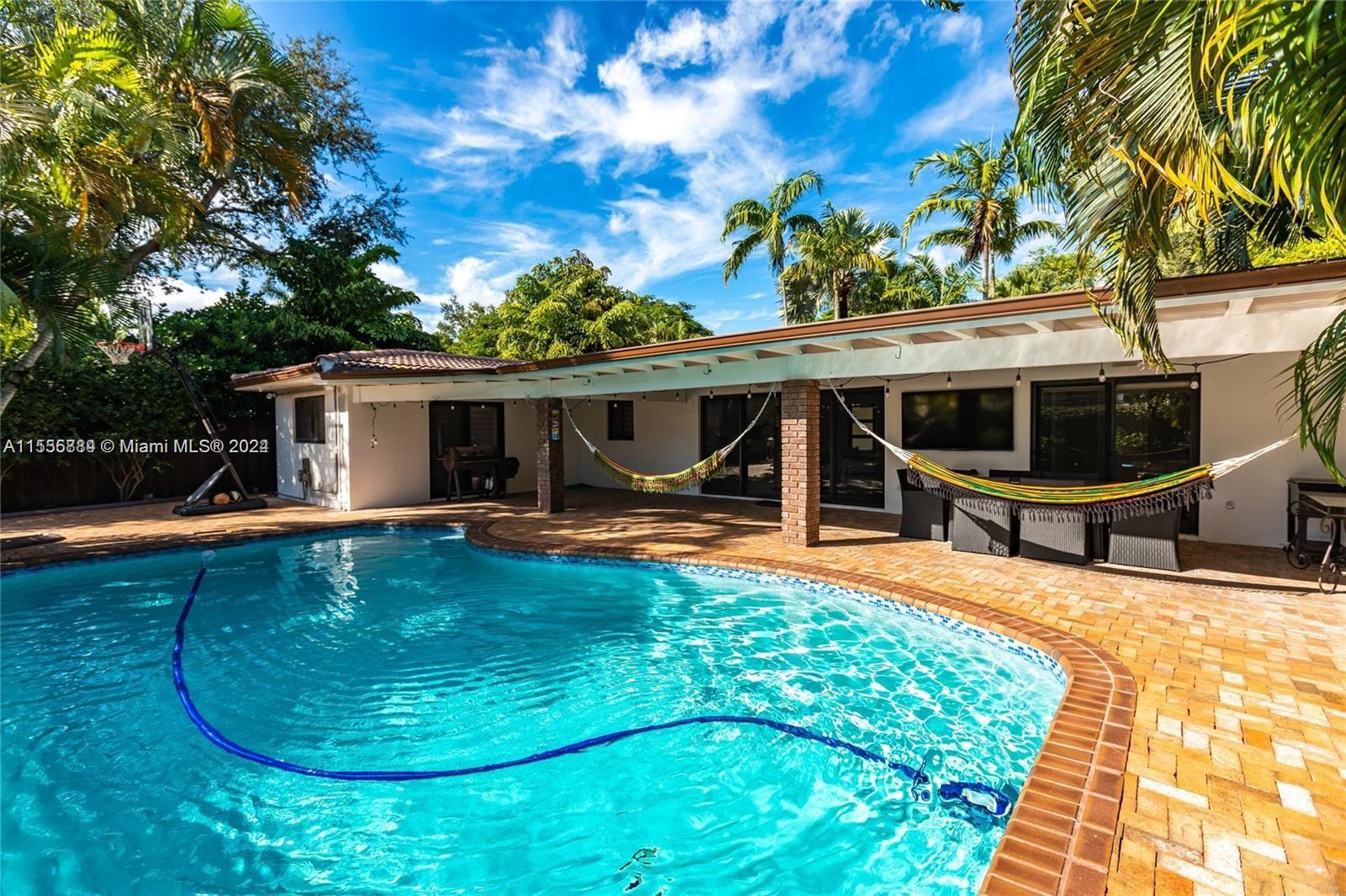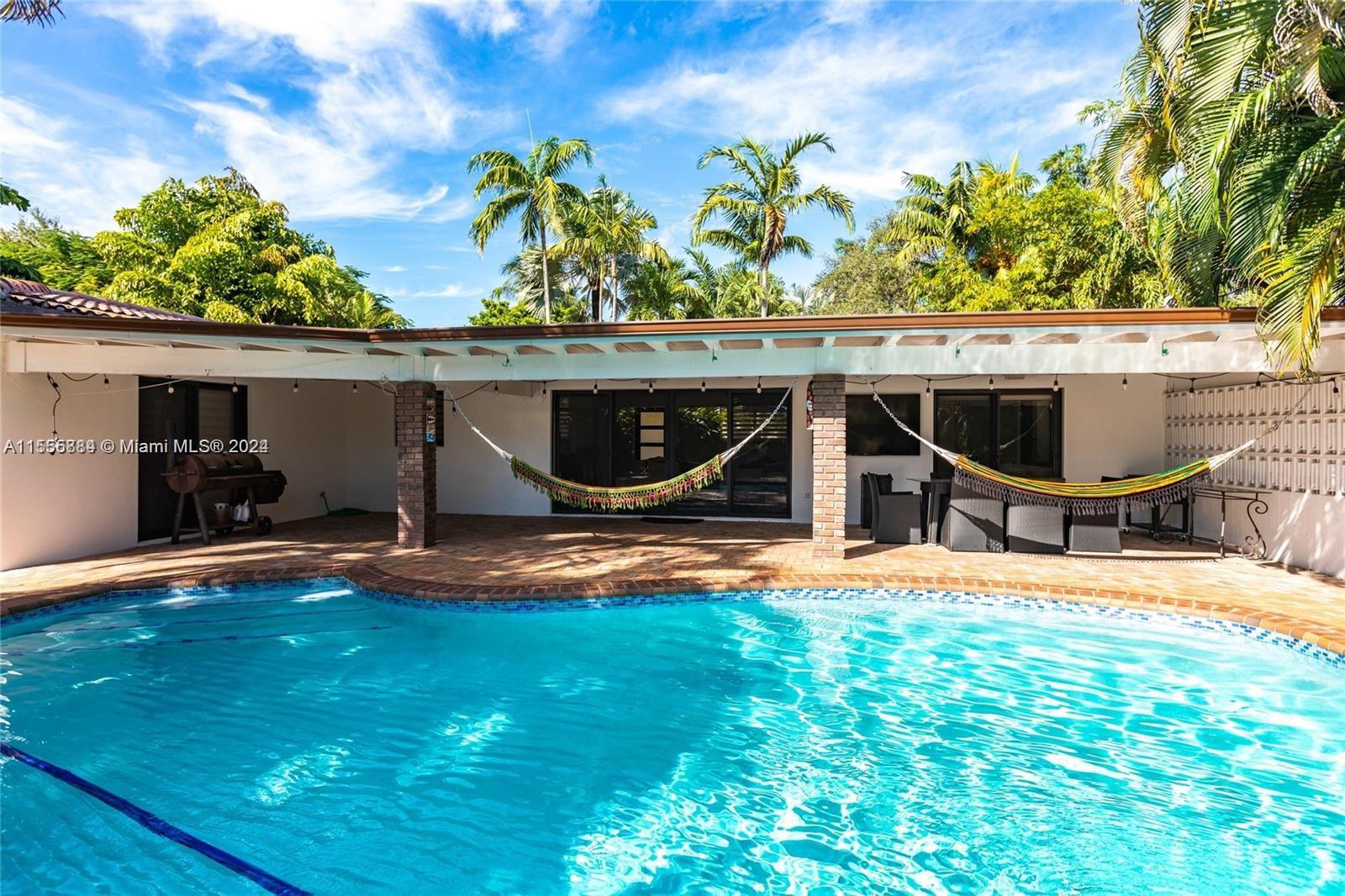 Unique residence located in the desirable neighborhood of Miami Shores, featuring 4 bedrooms and 2 bathrooms, alongside an ideal backyard for entertaining complete with a pool and basketball hoop. The kitchen has been updated with stainless steel appliances, a gas stove, and a stylish white quartz island with seating for four. The spacious layout features new large porcelain tile flooring throughout. Additionally, the property includes a new fence, hurricane impact windows, and fresh paint. Parking is available with a large driveway accommodating multiple vehicles, along with two separate gated entrances. Don’t let this chance slip away. Currently tenant occupied. It will be vacant and ready to show on April 13th, 2024.