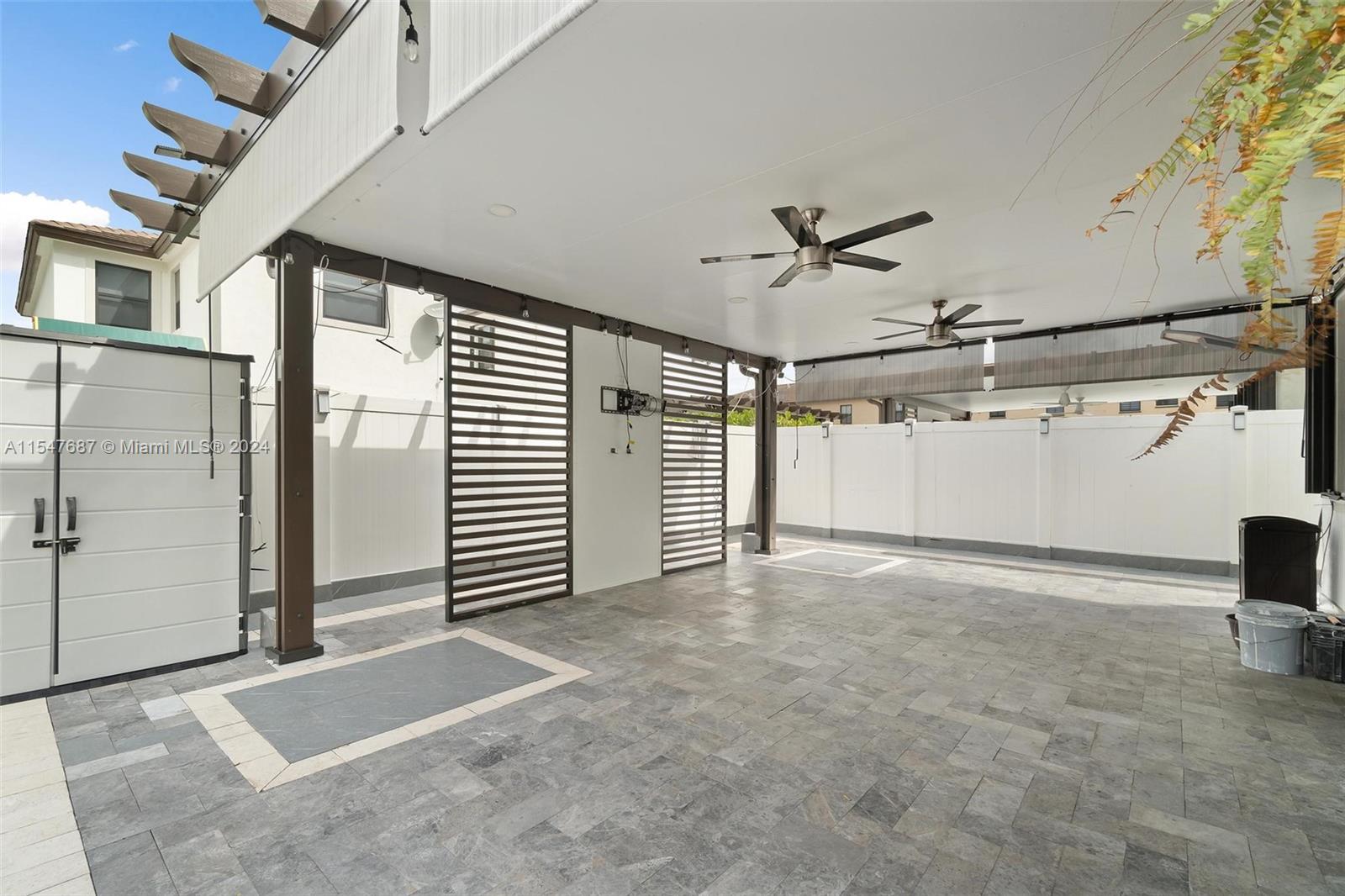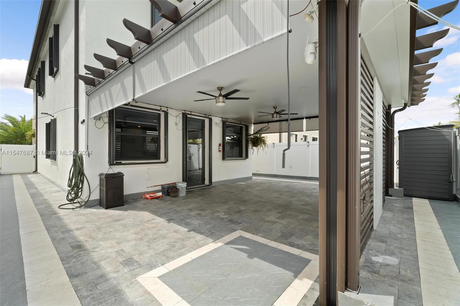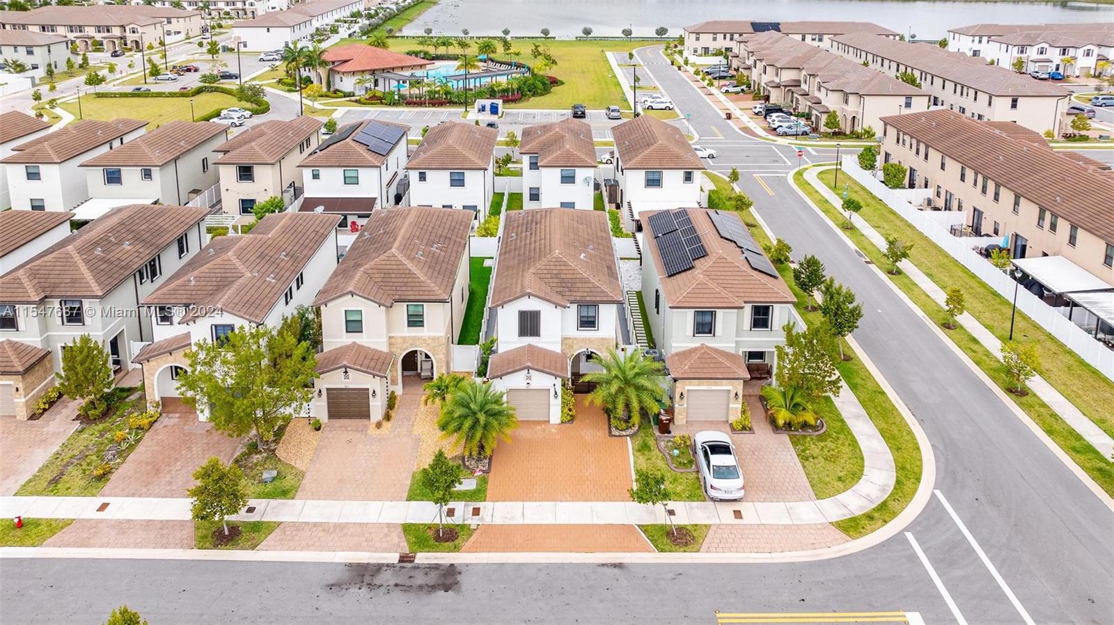 Spectacular single family home with 4 bedrooms and 2.5 bath located in Aquabella like new, gated community with two club house, pool, Kids Pool, Gym…Completely remodeled porcelain, vinyl, wood and marble floors in the back patio, quartz counter top, modern sink , gas stove, mosaic tile in backsplash and kitchen island and water filter, modern blinds throughout the house, large LG washer and dryer, lighting around the house, solar lamp lighting in the back yard, spectacular pergola with fan, connection for TV, fenced, blinds on the sides for the sun, the garage door is electric, the garage has its air conditioning, two fans, lighting, and a carpeted storage at the top, in the driveway extension to park up to 3 cars, two palm trees, don’t wait any longer and schedule your appointment