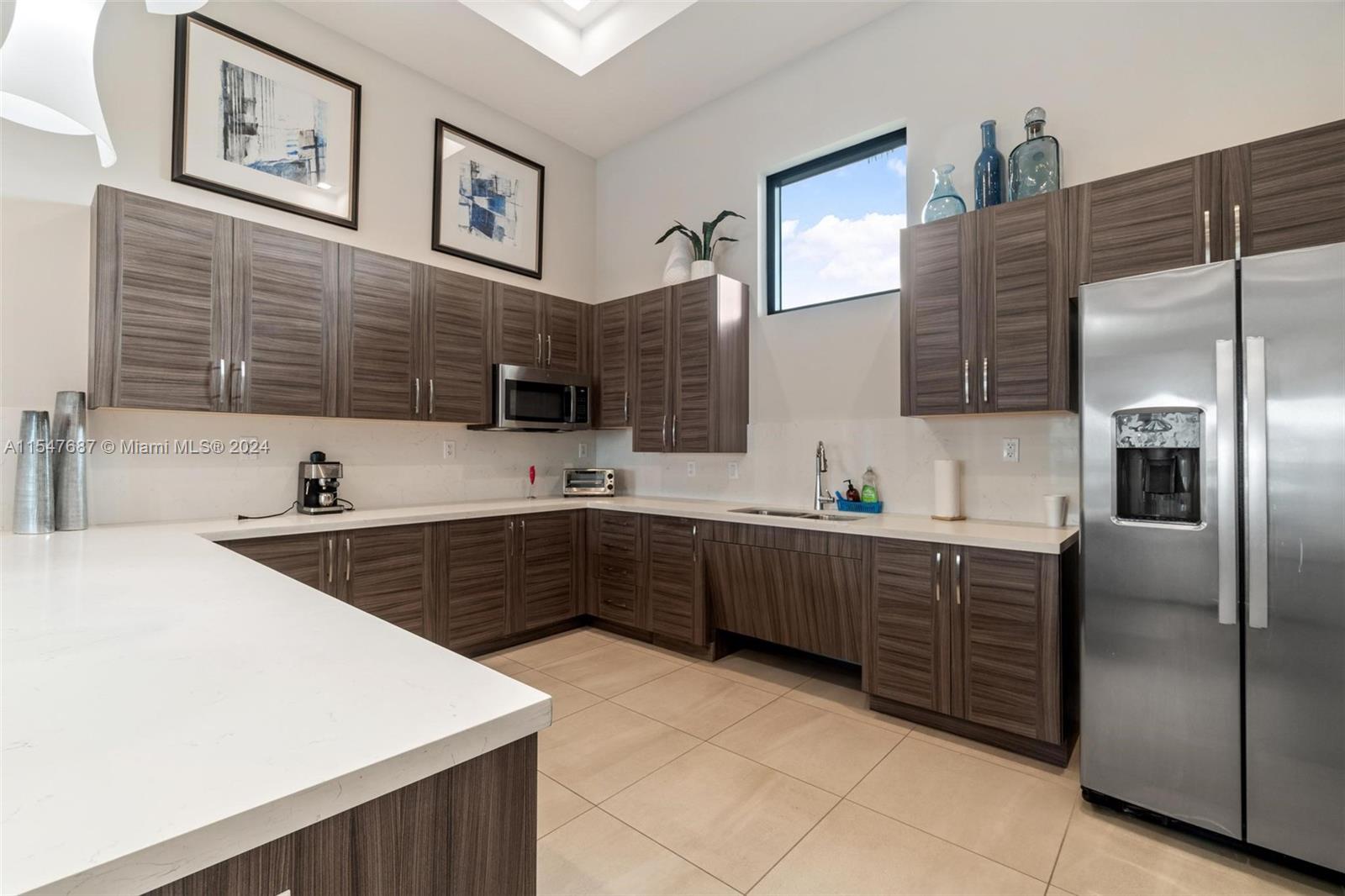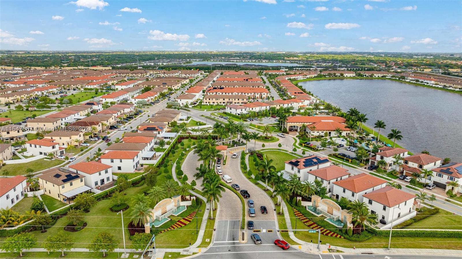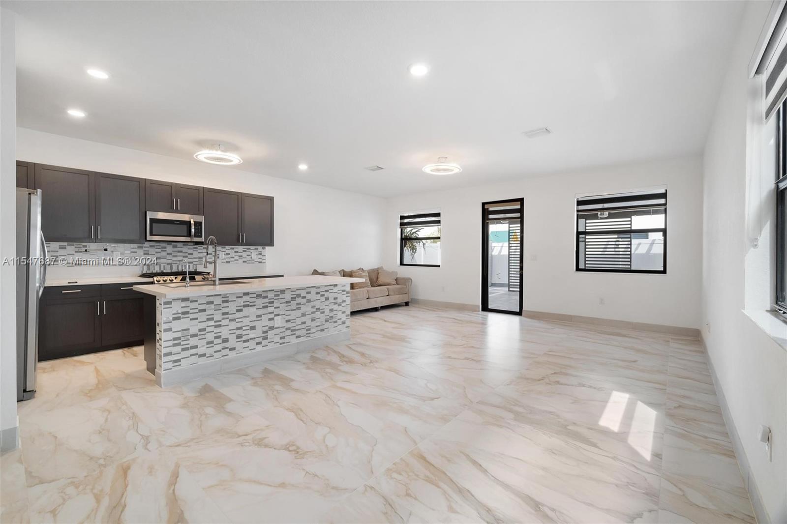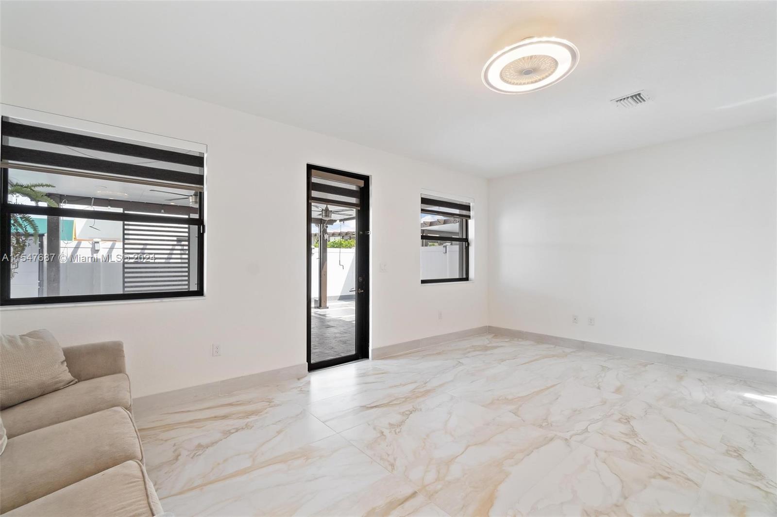 Spectacular single family home with 4 bedrooms and 2.5 bath located in Aquabella like new, gated community with two club house, pool, Kids Pool, Gym…Completely remodeled porcelain, vinyl, wood and marble floors in the back patio, quartz counter top, modern sink , gas stove, mosaic tile in backsplash and kitchen island and water filter, modern blinds throughout the house, large LG washer and dryer, lighting around the house, solar lamp lighting in the back yard, spectacular pergola with fan, connection for TV, fenced, blinds on the sides for the sun, the garage door is electric, the garage has its air conditioning, two fans, lighting, and a carpeted storage at the top, in the driveway extension to park up to 3 cars, two palm trees, don’t wait any longer and schedule your appointment
