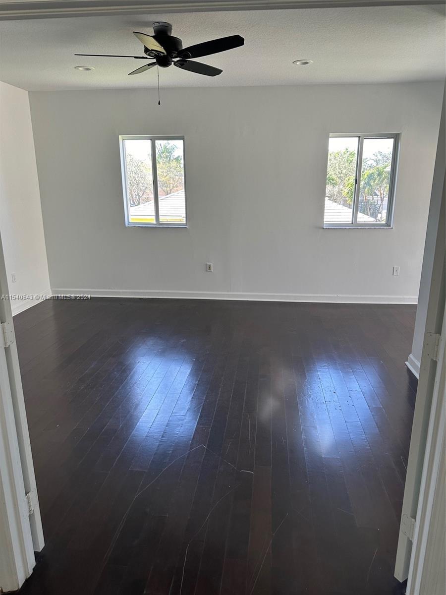 Beautiful single family house in a Gated community! This wonderful two-story home has a lot of natural light throughout the entire home. Floors are wood floor throughout the house that can be repainted or polished and will look brand new! It is a 5 bedroom, 4 1/2 bathroom with a double car garage. The house is equipped with Hurricane shutters throughout the entire home. The master bedroom has a private balcony facing the backyard and one of the other bedrooms has its own bathroom in the room as well! Plenty of space in the back yard to add a pool. VERY LOW HOA! Just MINUTES from the turnpike, shopping centers, restaurants.