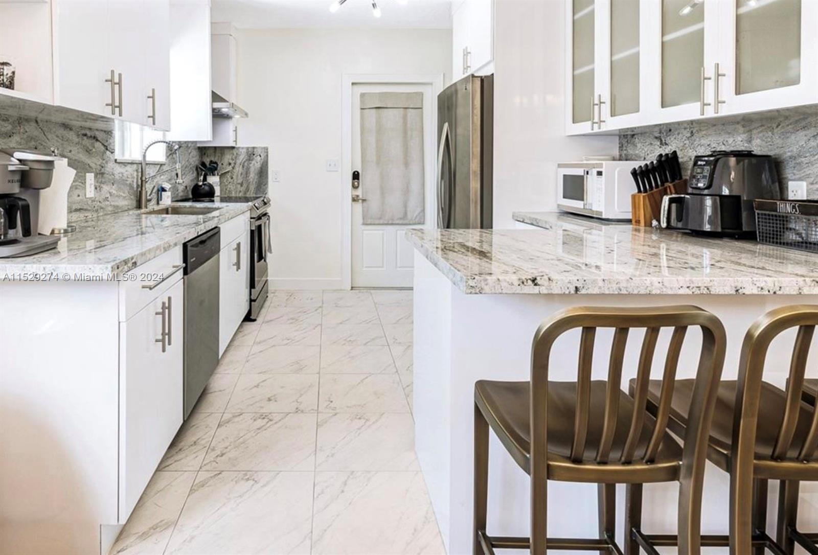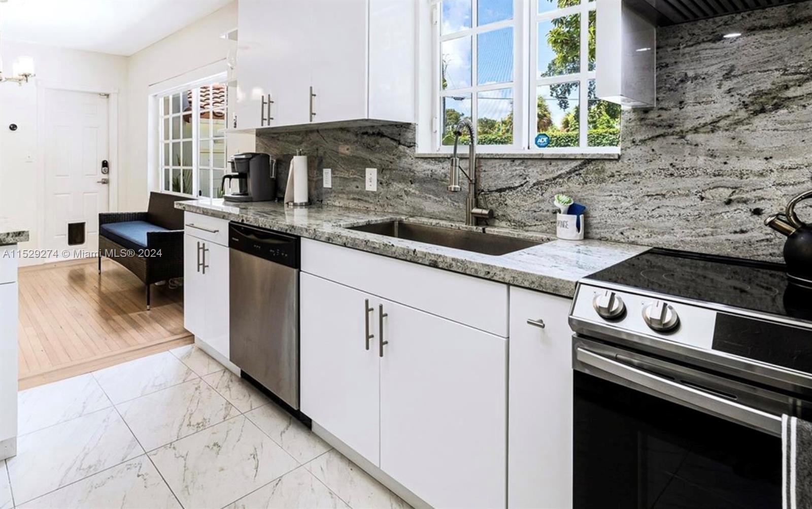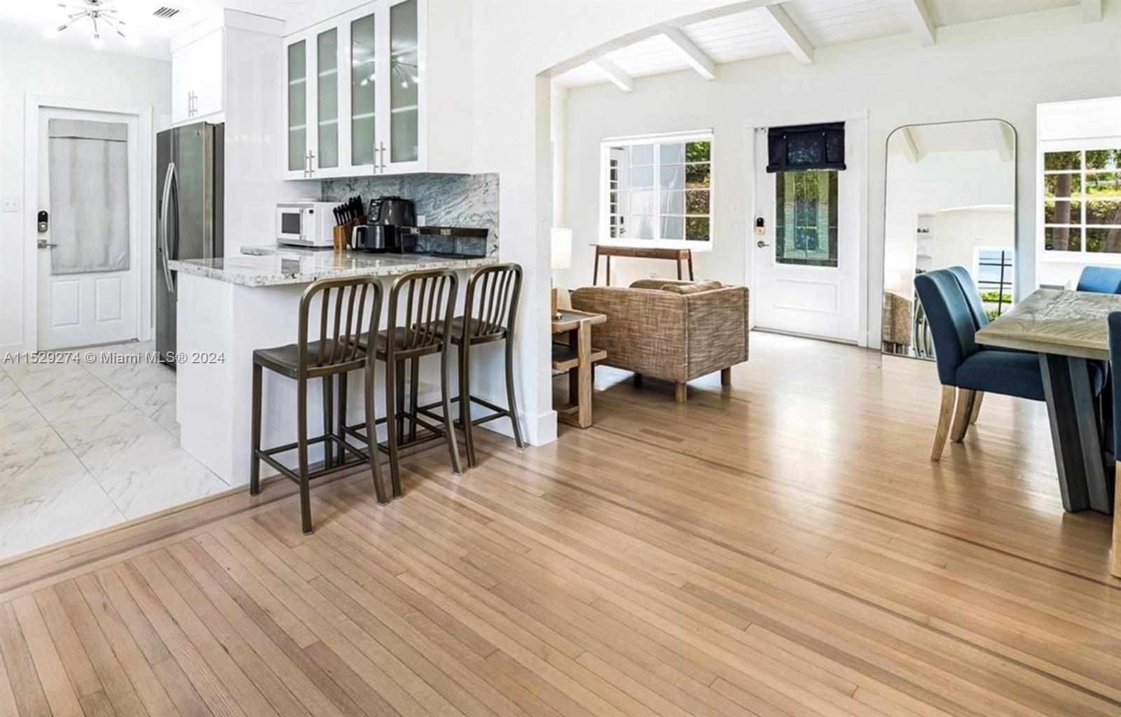 1875sq Ft Home. Fully RENOVATED Miami Shores Corner home on a LARGE private lot with a BRAND NEW 20×40 POOL & HOT TUB, 1200 sq ft stone patio. Vaulted Ceilings, Fireplace, Bright Light, Flowing Spaces with Historic Archways, Large Windows + Large Master Suite with a separate front entrance + walk in closets + ensuite JET SHOWER. Pristine Turnkey Condition, available with brand new furnishings and kitchenware. Automatic TWO-CAR GARAGE, Washer/Dryer + STORAGE. IMPACT WINDOWS, AND BRAND NEW SLIDING GLASSS DOOR? New Kitchen, Quartz Counters, Stainless Appliances. New 1200sq ft backyard white stone patio. A Tropical Oasis w/ UTMOST PRIVACY and a huge Avocado and Mango Tree to boot! Extra Parking in the private alley. MOVE RIGHT IN! 1 Block from the the MIAMI SHORES VILLAGE.