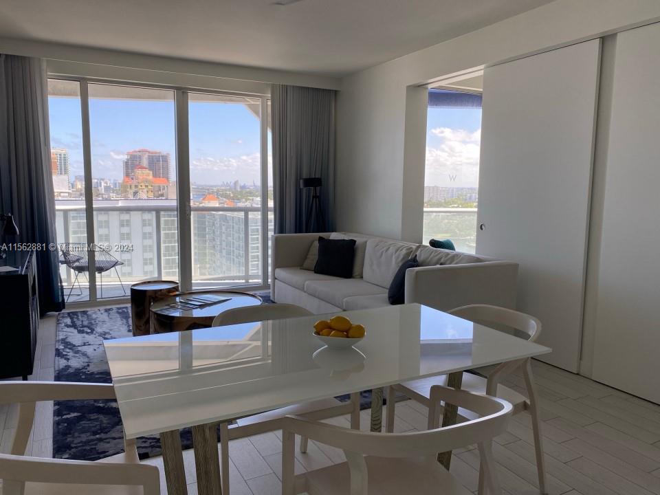 Amazing corner unit with Ocean, intracoastal and city views. Fully furnished. Luxury living on a high floor with all the amenities in the W hotel residences. Amazing amenities including complimentary Yoga and Spin classes, 2 hour complimentary bicycle rentals, complimentary 2 beach chairs and umbrella with water, gymnasium, complimentary room wifi and cable TV, 2 pools, restaurants discounts and more.