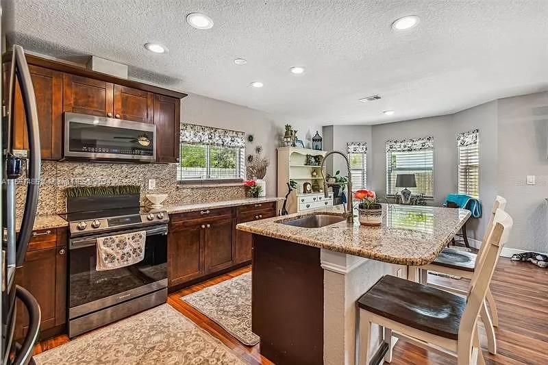 Granite Island With Breakfast Bar, Granite Countertops, and 2022 Stainless Steel Appliances. Wood Flooring, Vaulted Ceilings, and a Split Floor Plan. A/C Condenser 2020. Modern and Spacious Home.