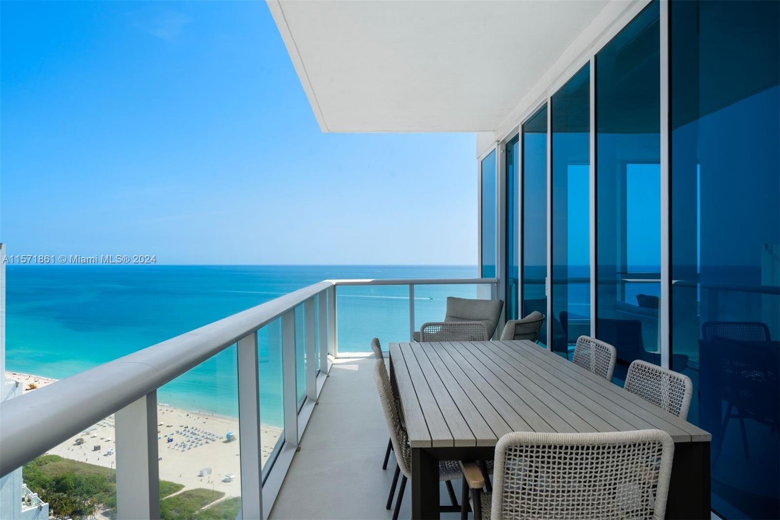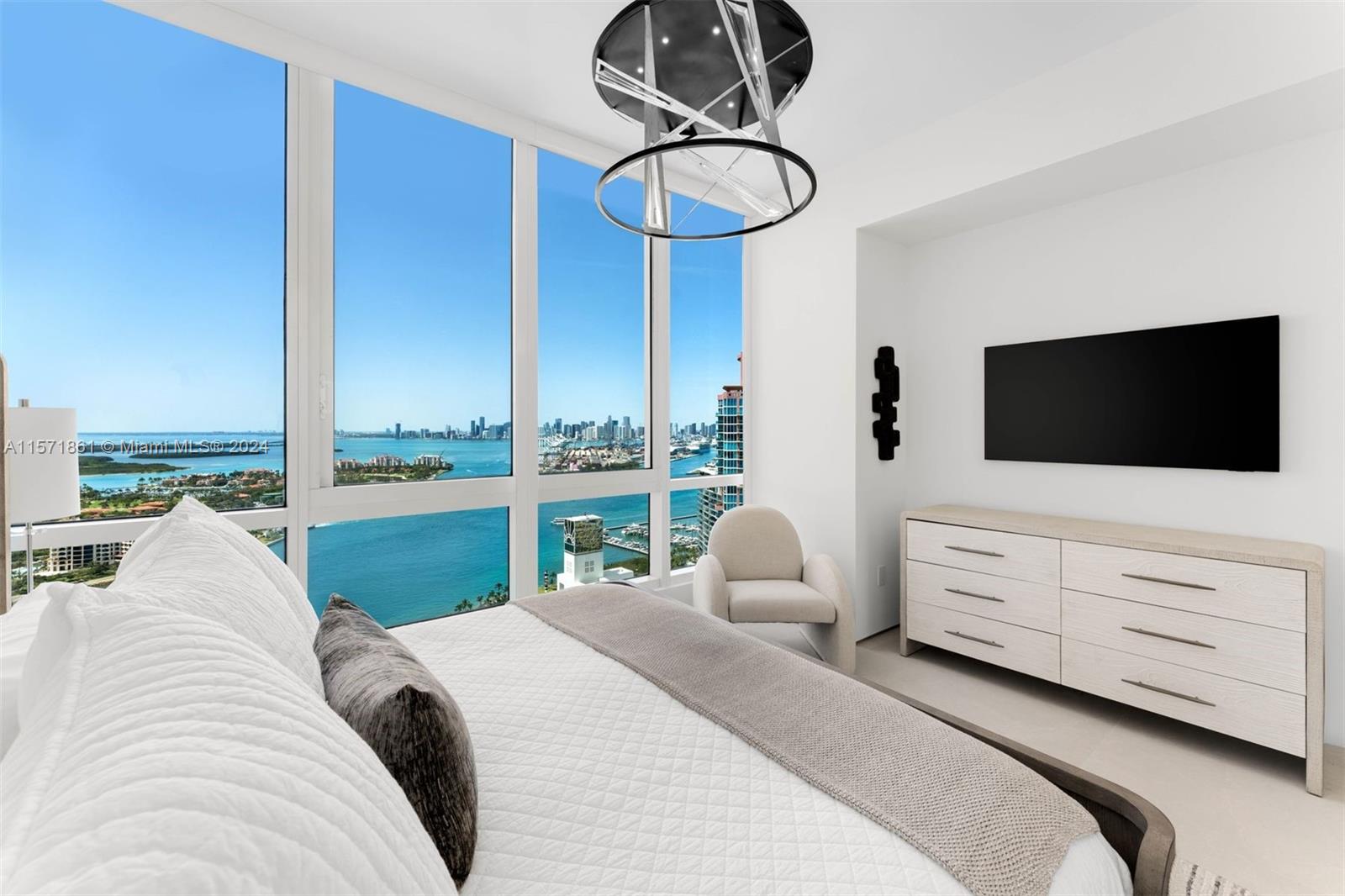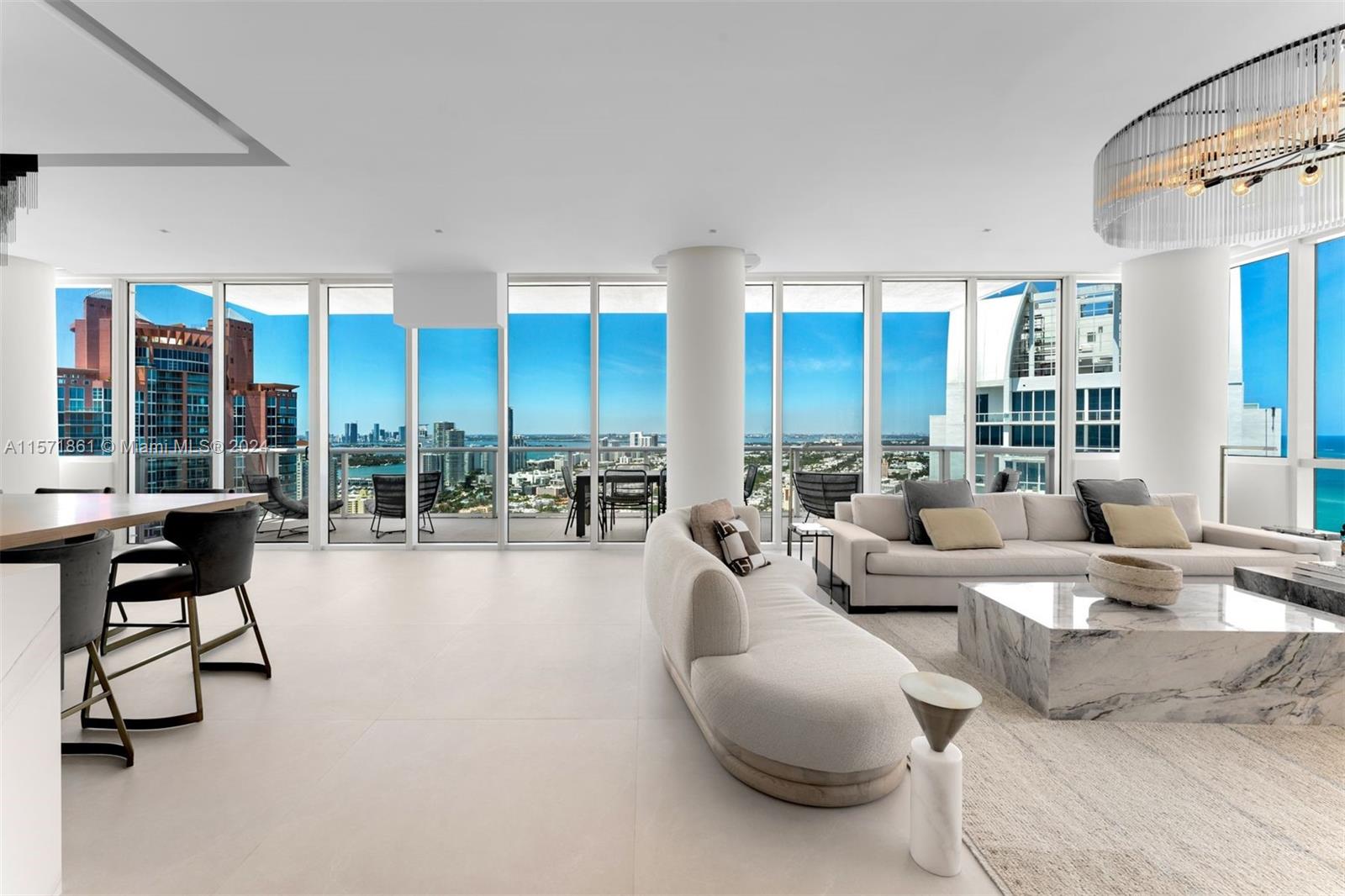 This fully renovated four-bedroom, four-bathroom private residence offers spectacular sunrise and sunset views. Meticulously redesigned with a spacious and open layout to offer comfort, functionality, and style. Three exposures provide panoramic views of Miami Beach, the ocean, and the Miami skyline. The primary suite is a serene sanctuary adjacent to a spa-like ensuite and private study. Delivered with the finest materials from ITALKRAFT, book-matched slabs in each bathroom, 4×4 Iberia tiles throughout, and a specialized lighting system to provide the perfect ambiance. Enjoy 5-star resort-style amenities in Miami Beach’s most coveted property. Located in the highly sought-after neighborhood South of Fifth, you will be within walking distance of many of the best parks and dining.