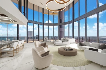 Experience ultimate luxury in this 5173 sq. ft. tri-level penthouse at The Brickell Flatiron. With 6 bedrooms and 5.5 bathrooms, indulge in spacious living. The private pool deck offers 180-degree views, an outdoor kitchen, and an ideal space for gatherings. Italian marble flooring adds opulence.